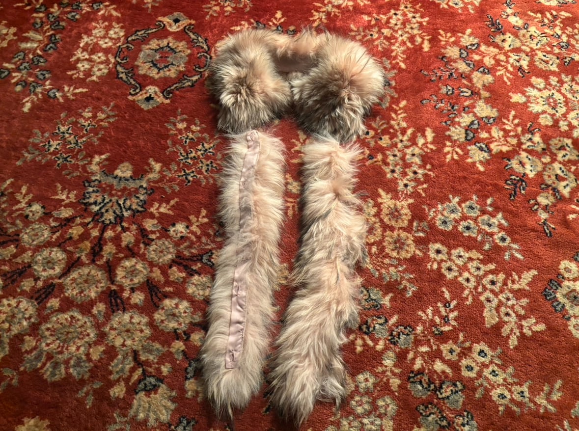 ブラウンとピンクの混ざったボリューミーなファーがとても可愛いかつ、淡い色味なので派手すぎず着やすいです。