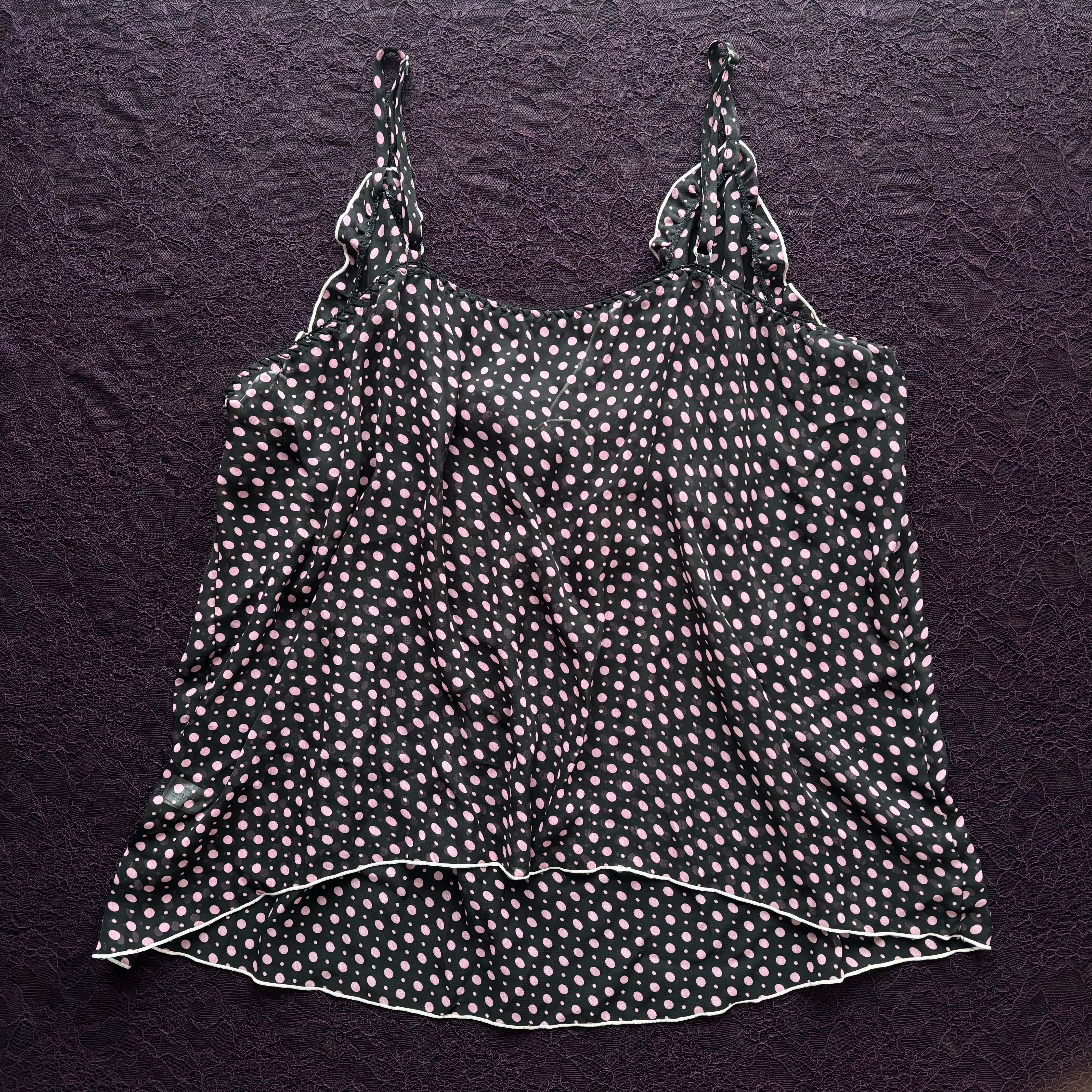 ピンクと黒のドットがらにリボンが着いたキューティーなキャミソール。
