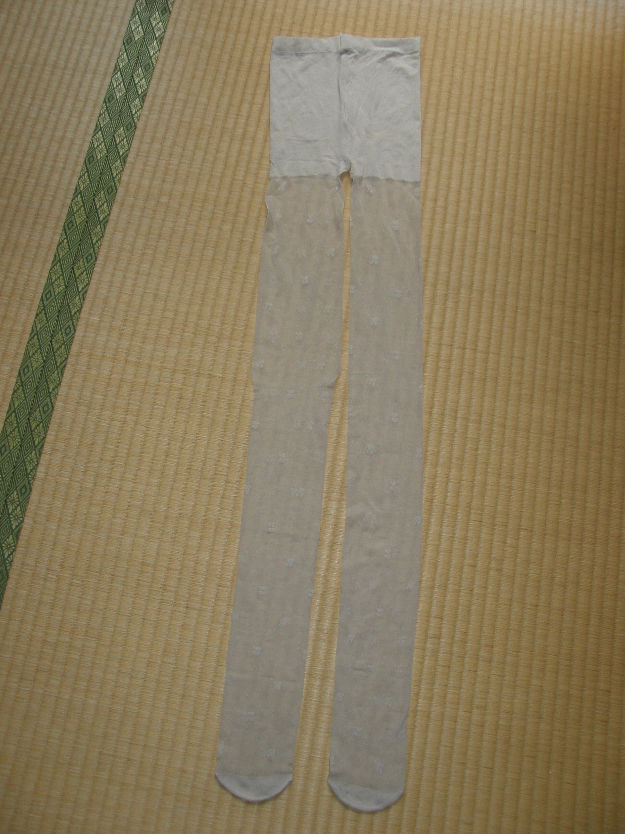 三葉のような小さな葉っぱとつぶつぶのドットがプリントされたタイツ。