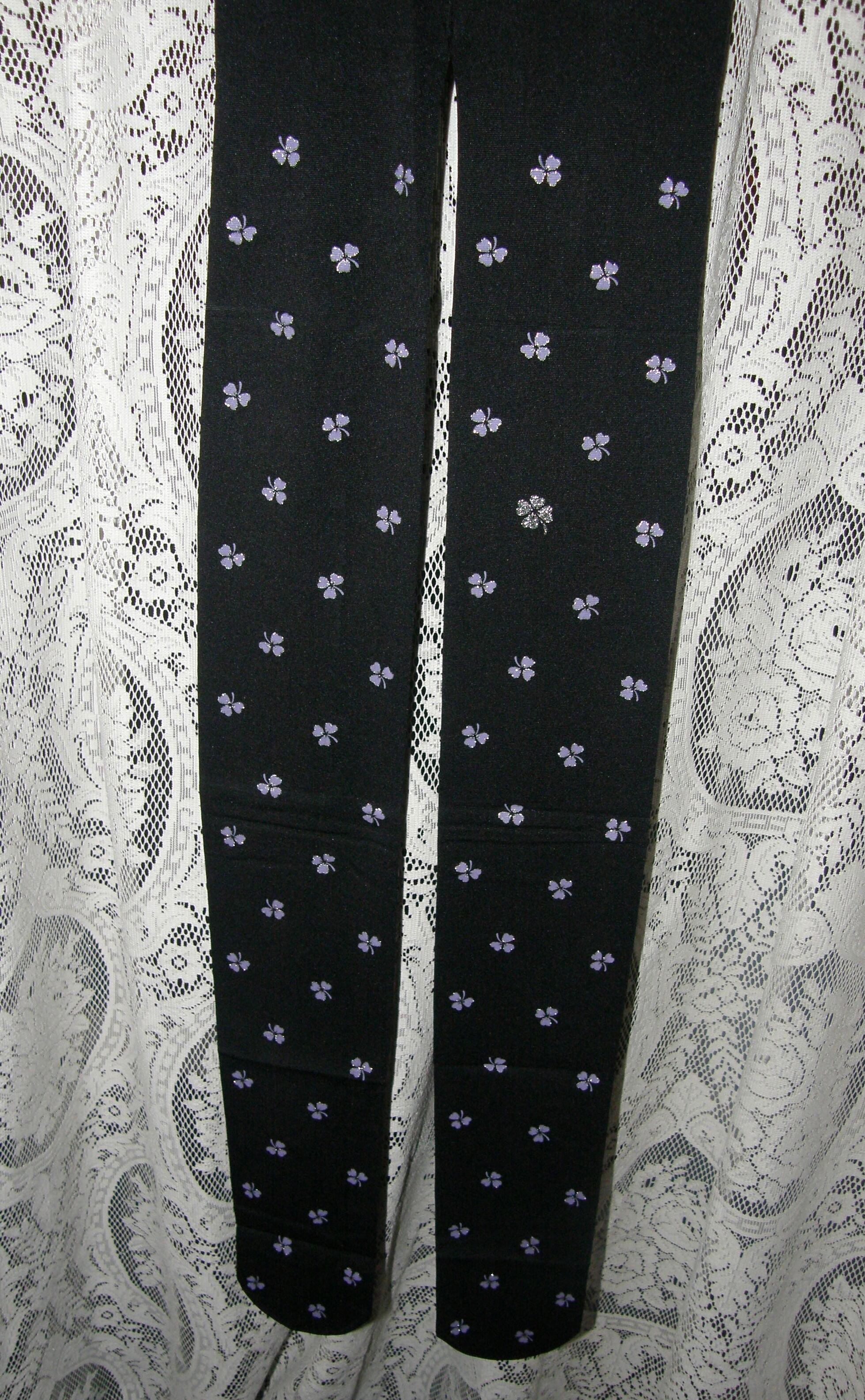 ラメラメな紫がかわいい三葉のクローバー♣︎たちの中に一つだけ四葉のクローバーが隠れているという遊び心あるお茶目タイツです♣︎♣︎
