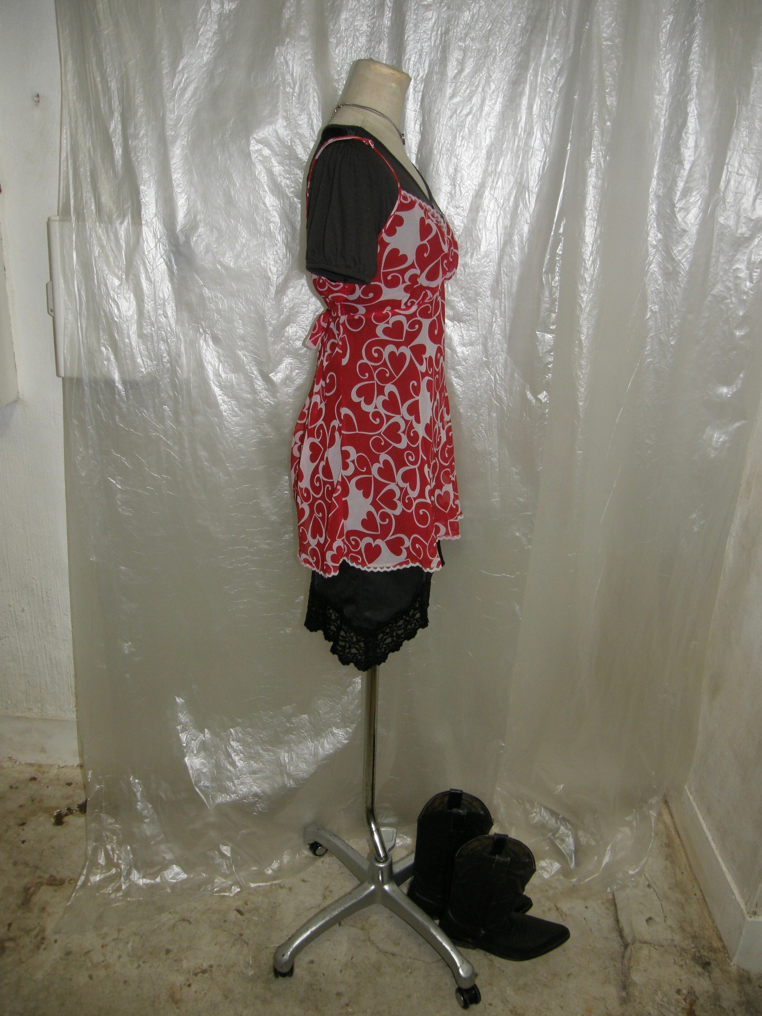 くるんくるんとしたラブリーなハートたちが真っ赤なシフォン地にプリントされており、そこに白レースが加わってとびきりにラブリーな1着です❦
