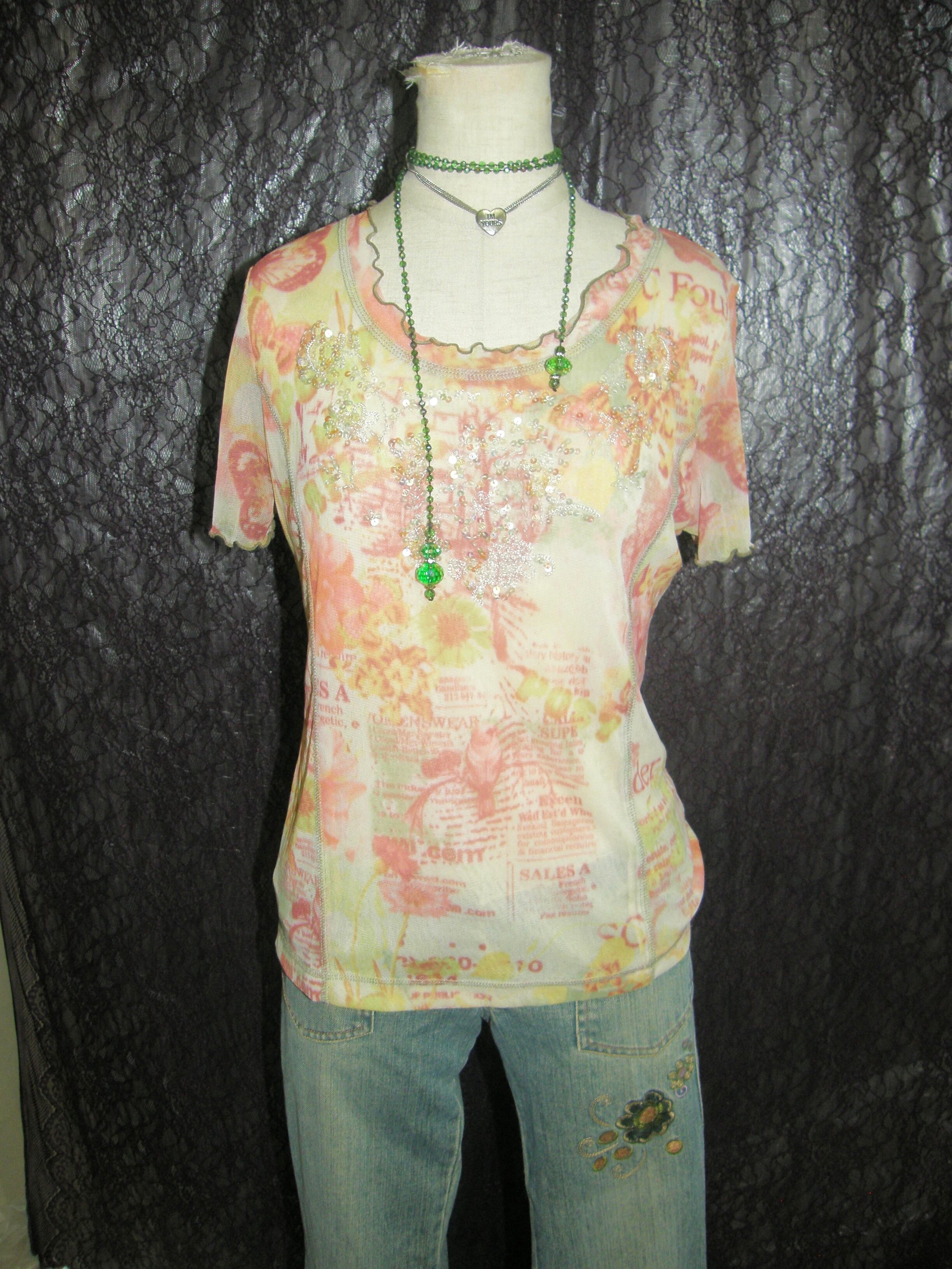 シアーなトップスはピッタリとしたサイズ感のものが多印象ですがこちらはTシャツに近い感覚で体型気にせずご着用頂きやすいサイズ感です。