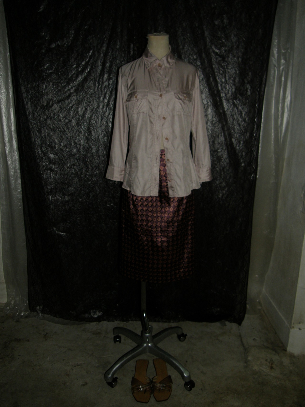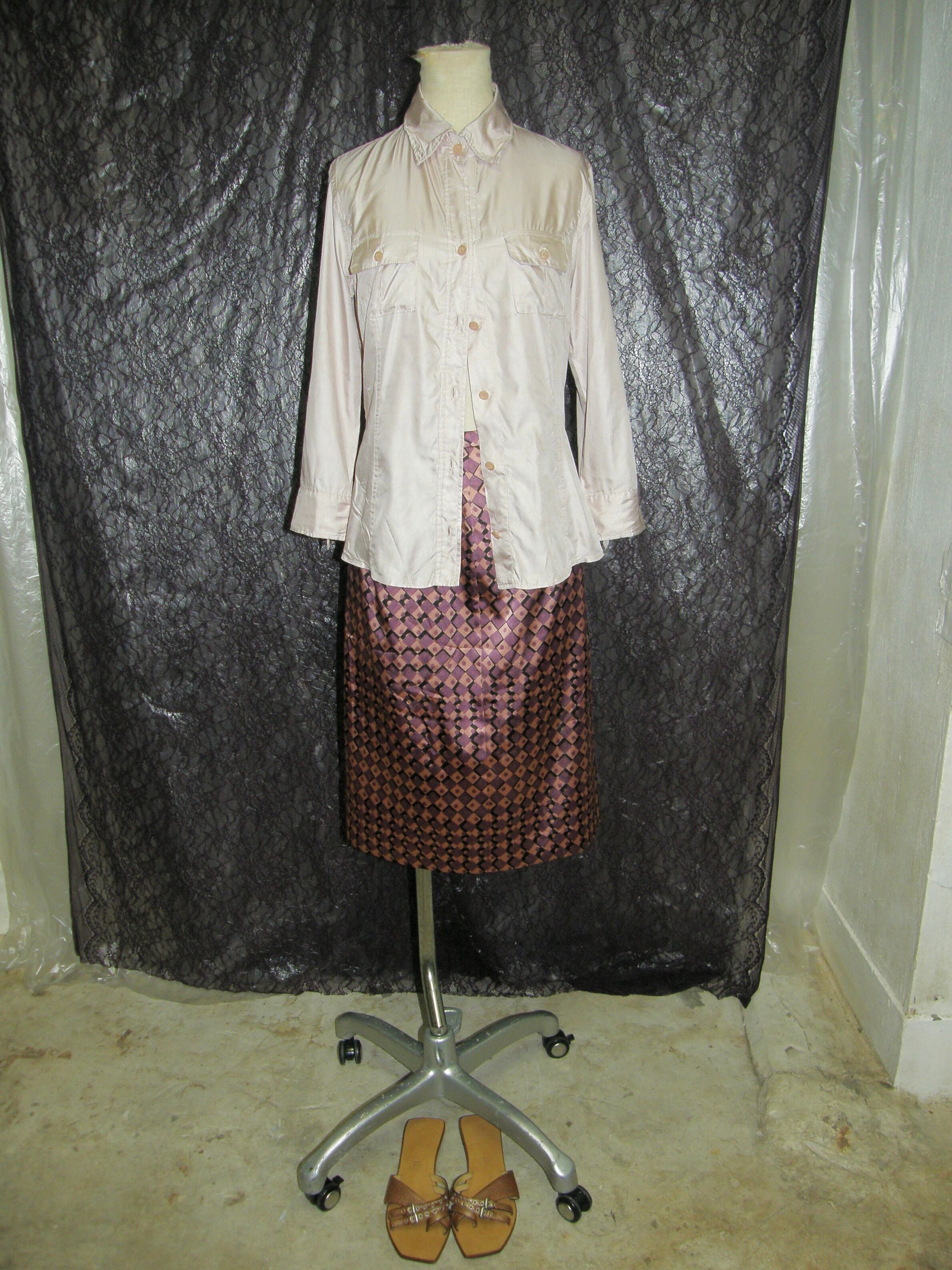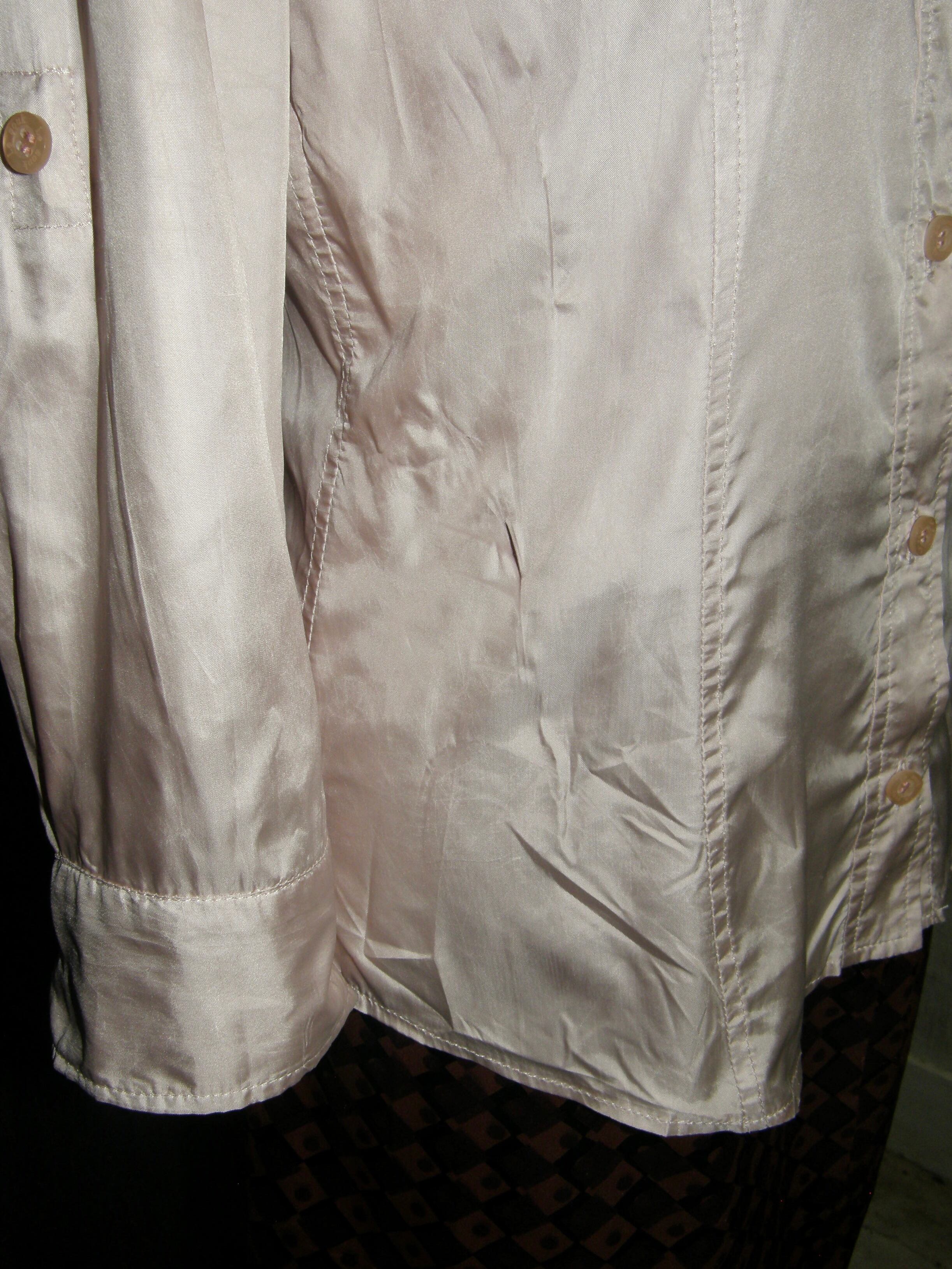 (この色のサテンシャツは珍しく、作りも綺麗でとても推しなもので個人的にはダメージ気にせず着たい服ですのでこのような形でお出ししてみます)