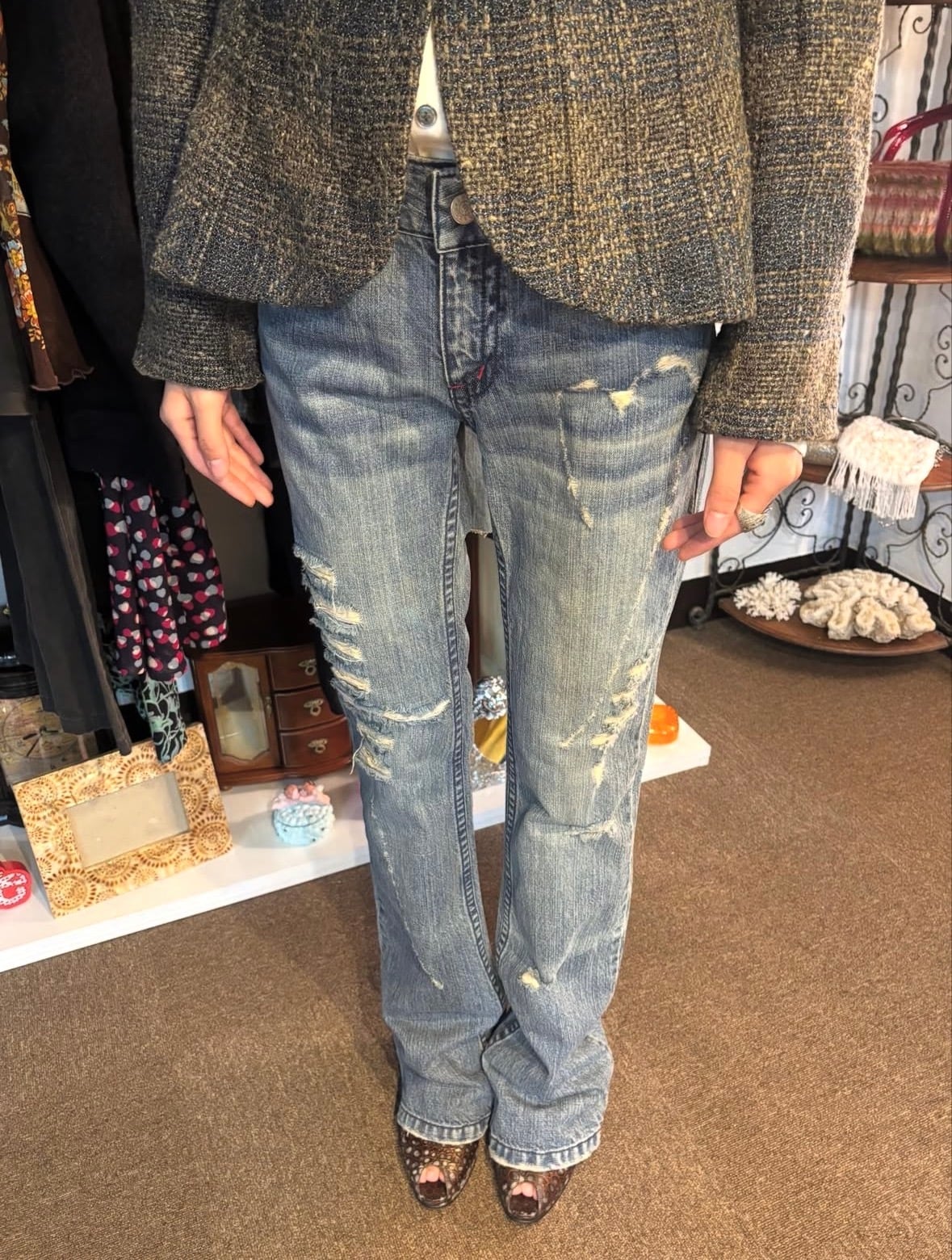 ハートのダメージが可愛いのはもちろん、デニム自体のシルエットがとても綺麗でサイズの合う方にはイチオシなアイテムです。