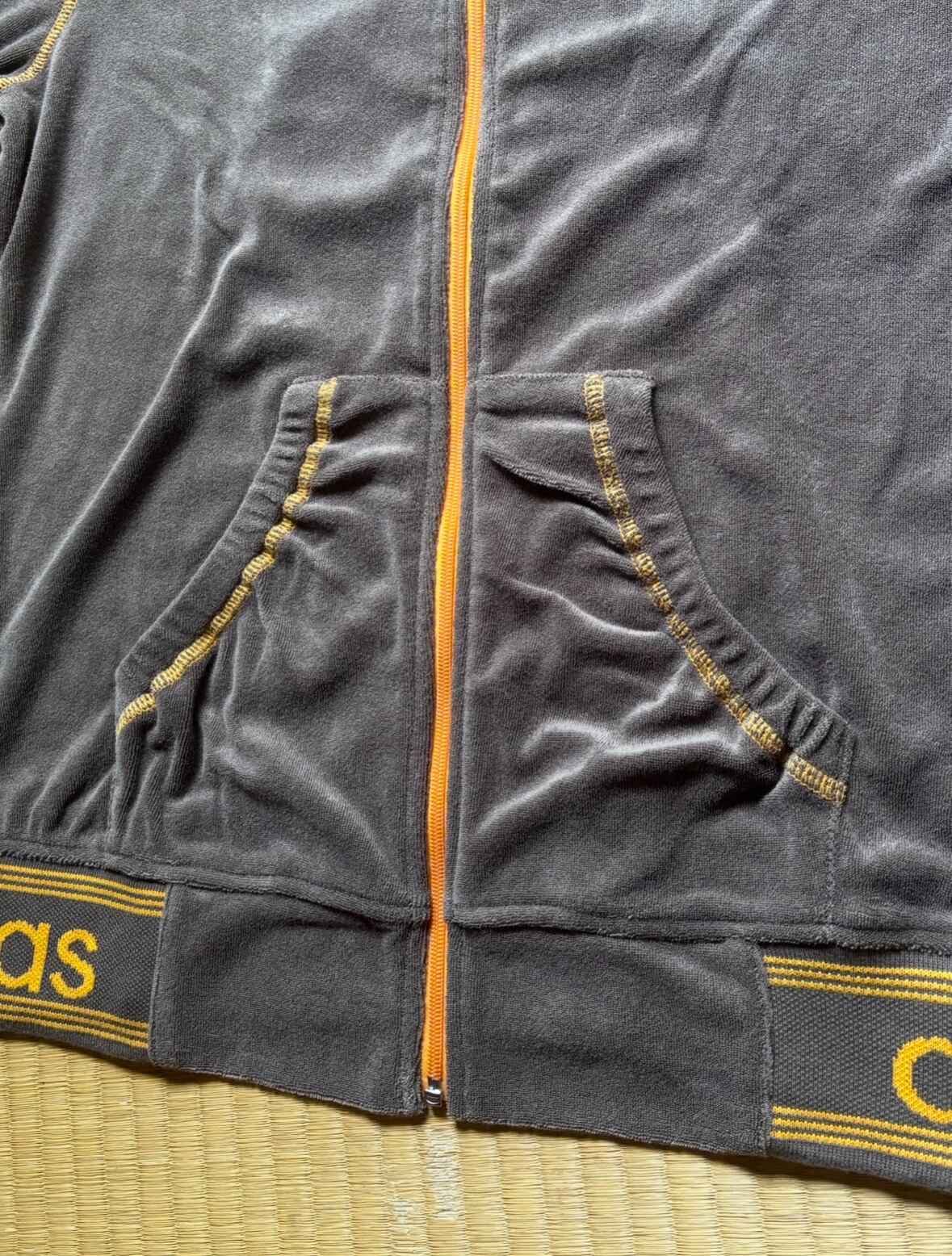 くしゅくしゅとしたポケットと大きめのadidasロゴがPOPUPで可愛いですが色味が派手すぎず使いやすいパーカー。水着やキャミの上から羽織ってもよし、前を全締めしてトップスとして着てもよしです。