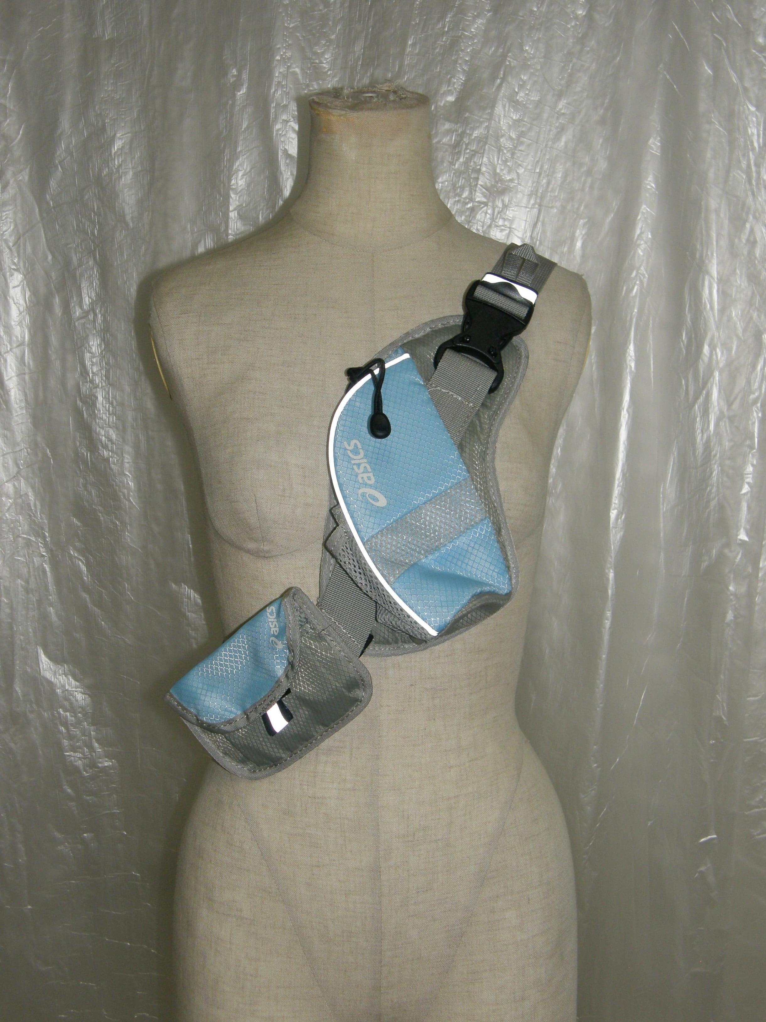 淡いブルーとグレーの組み合わせが可愛いウエストポーチ。
