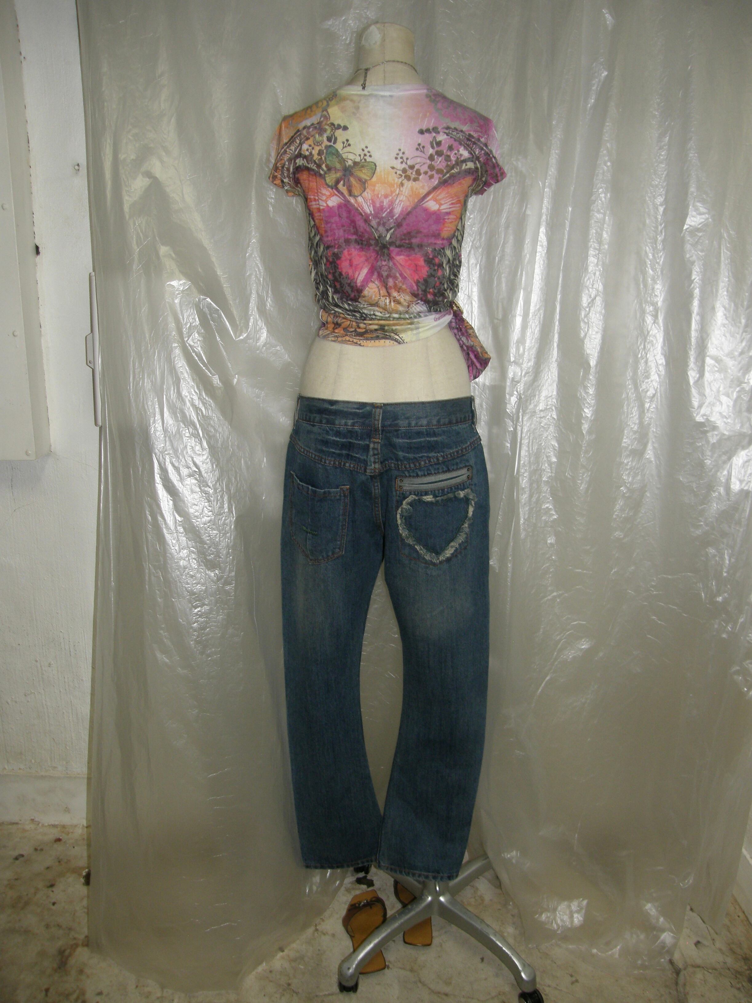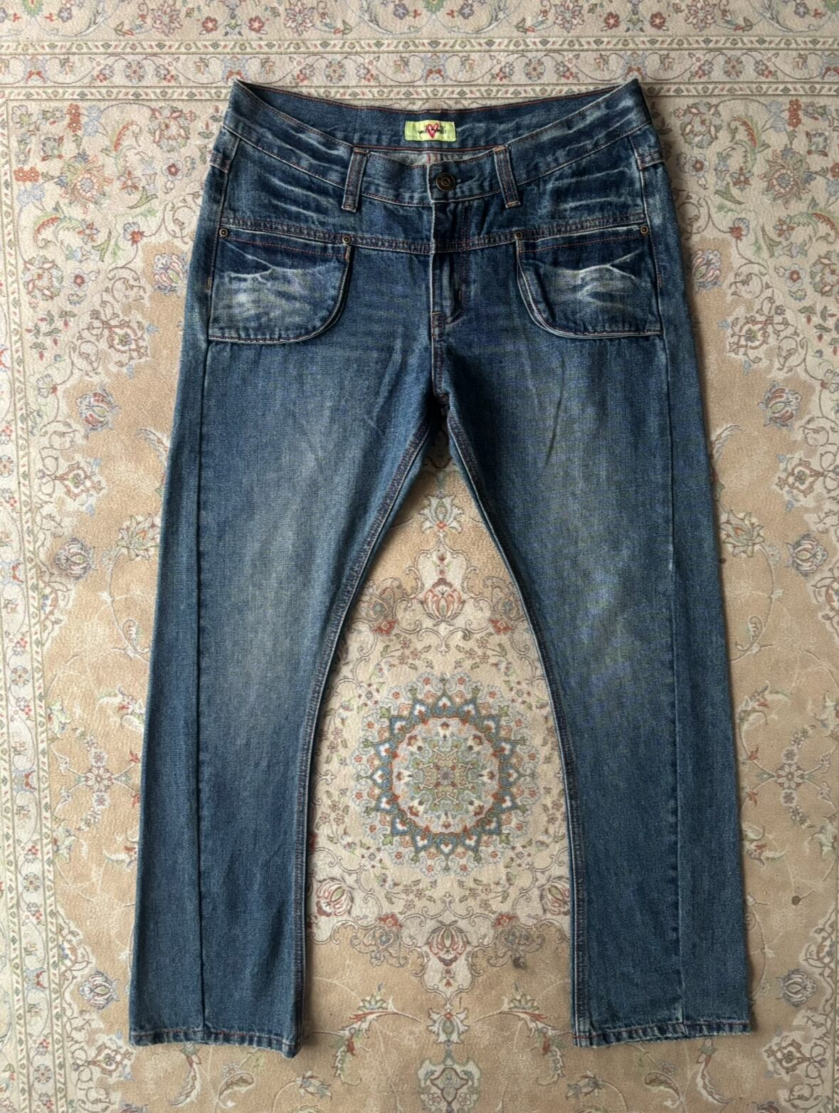 Lowrise heart pocket curved jeans