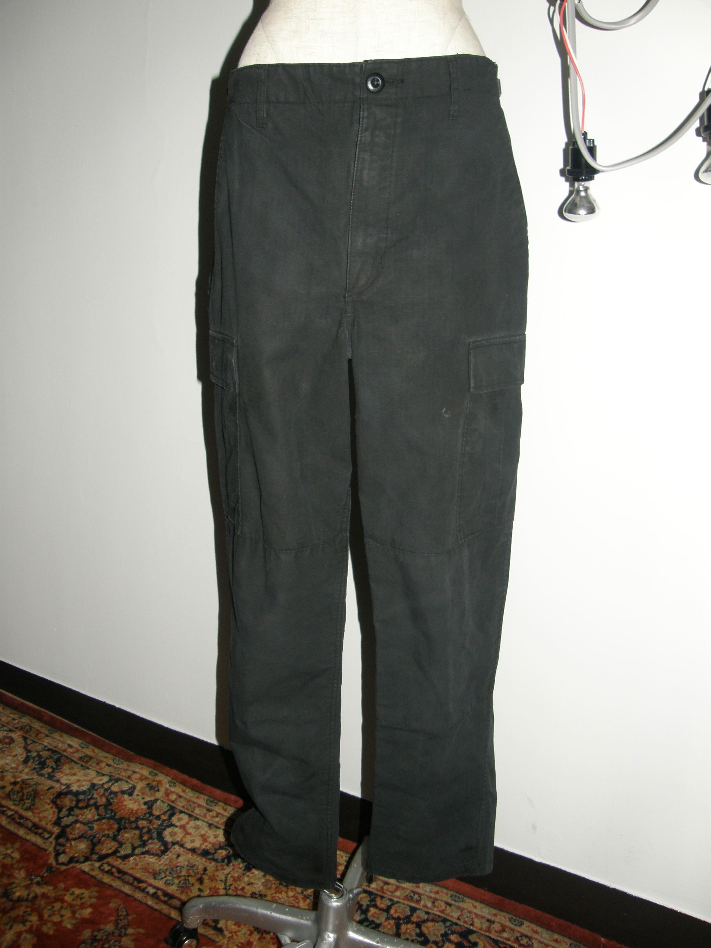 リップストップ生地に黒ペンキを塗り重ねたような質感のカーゴパンツ。