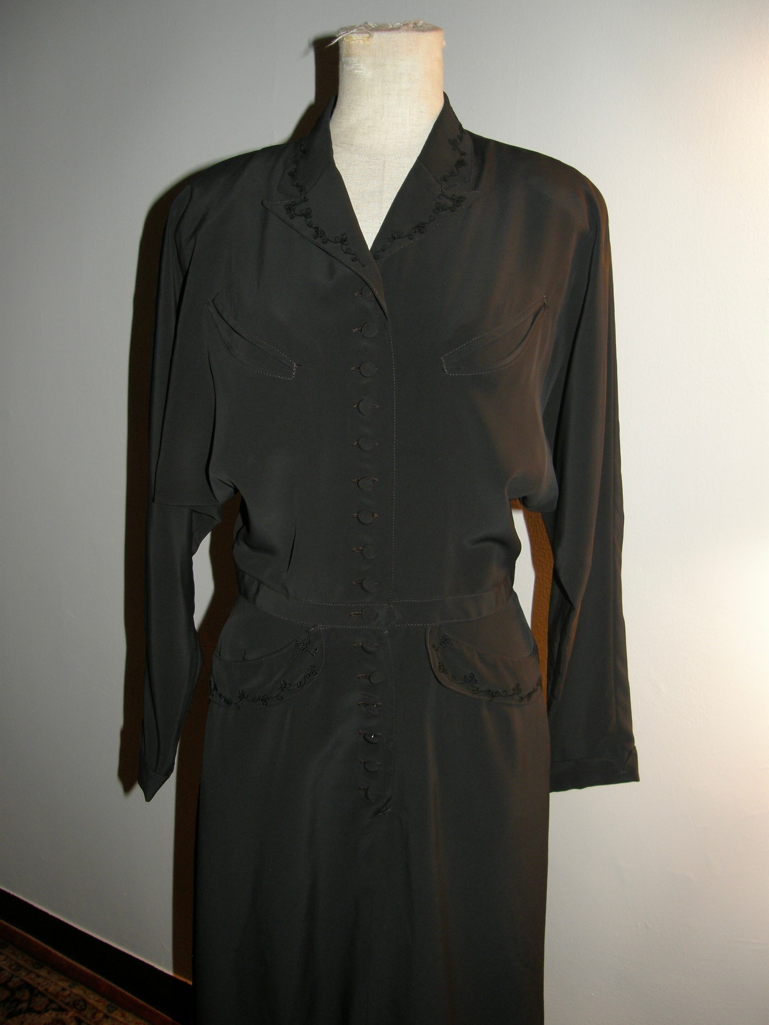 【Estimated 80's vintage 】Flower Embroidered Covered Button Dress