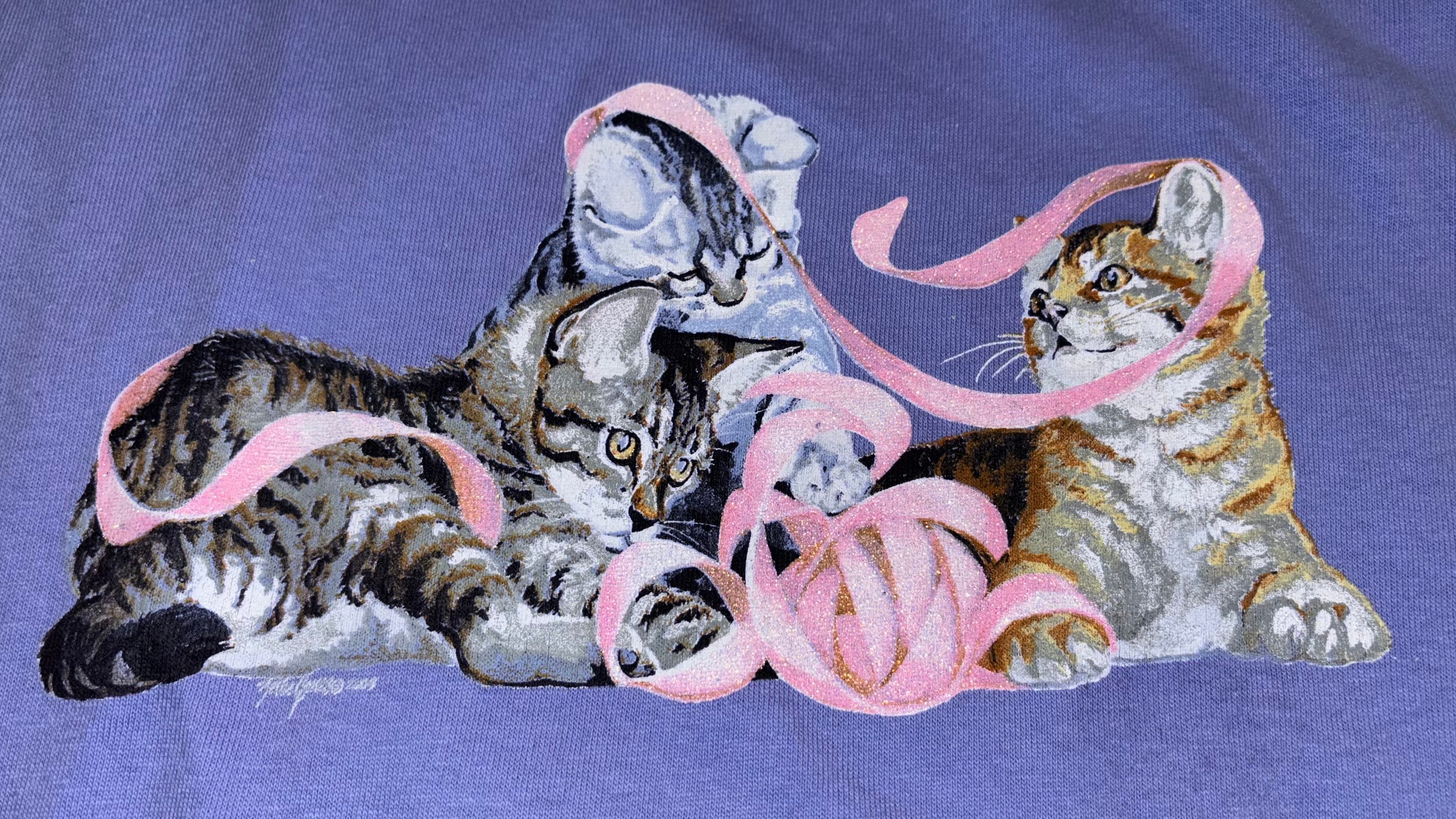 【vimtege】Ribbon playing cat T