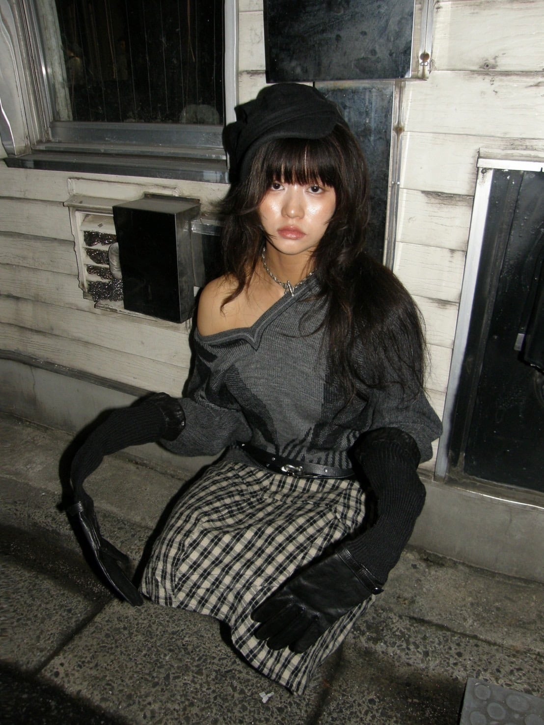 asymmetry balloon check wool skirt