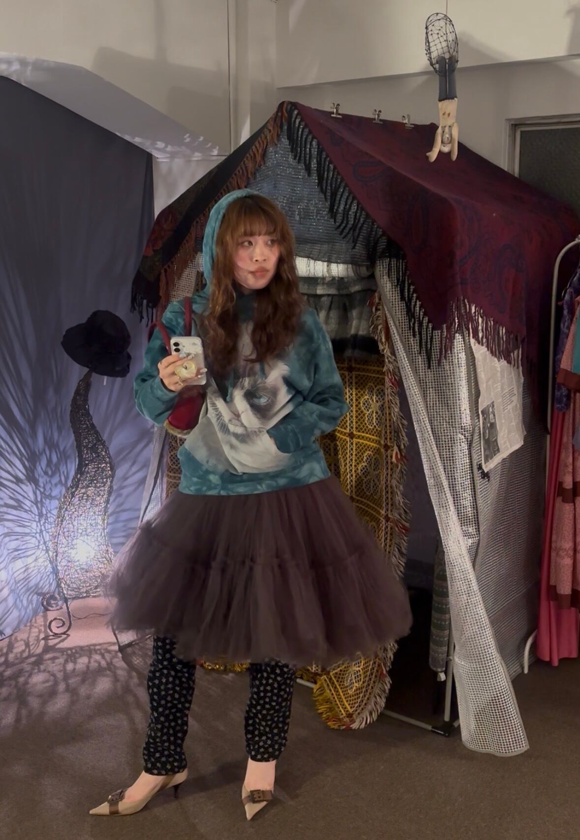 スカートやワンピースにレイヤードして、レギンスのように使っても可愛いです。