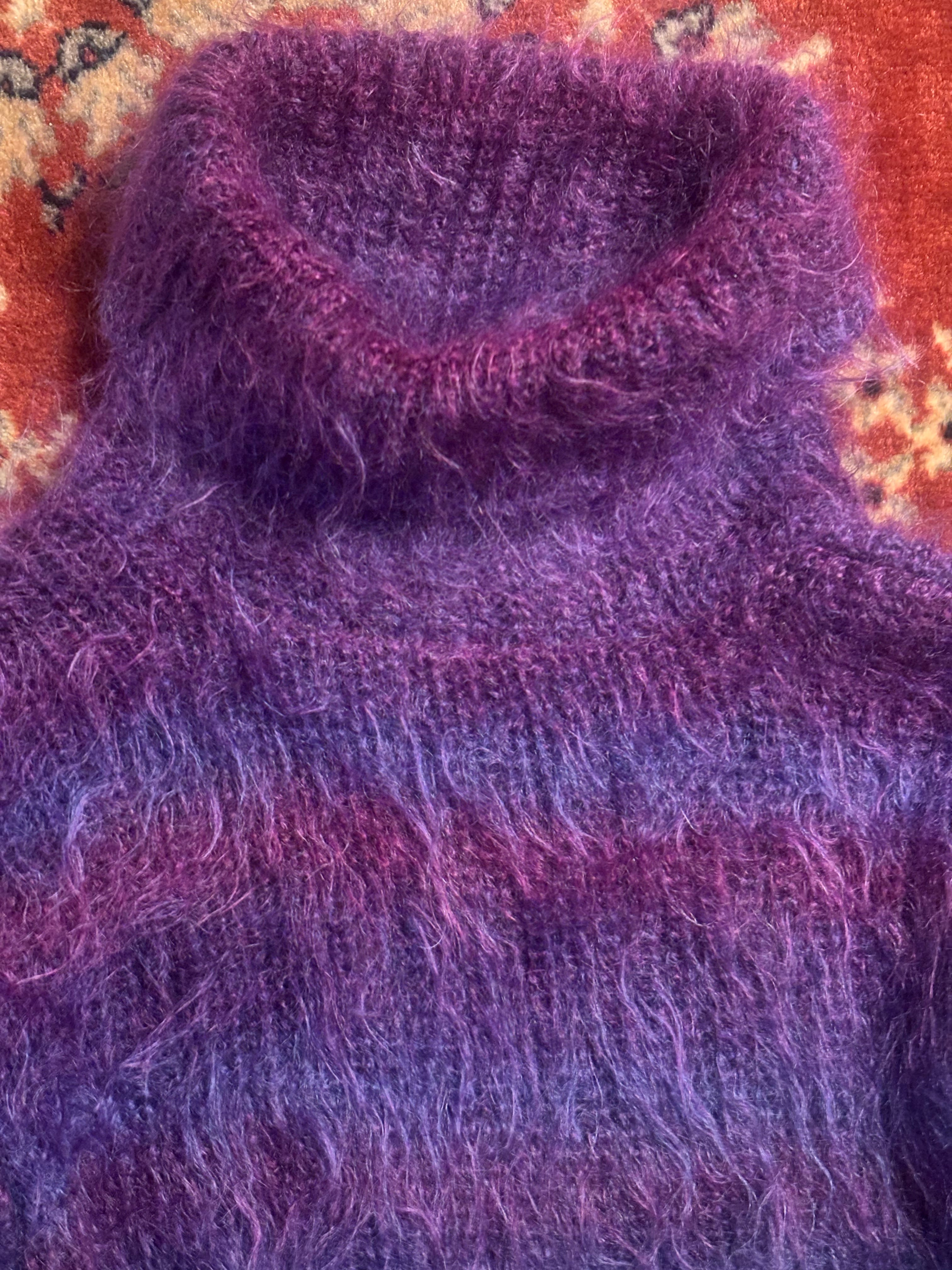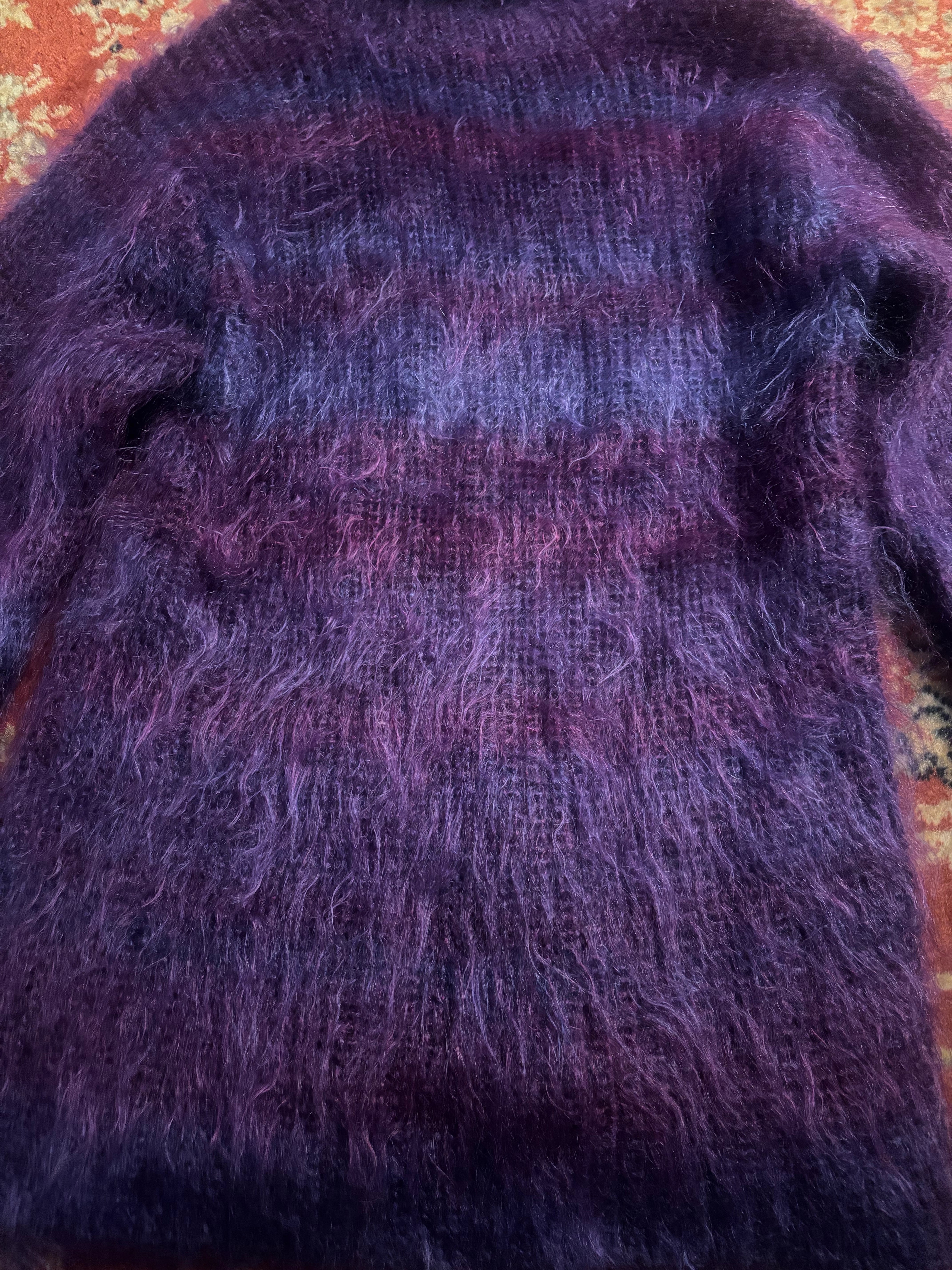 Gradation border shaggy knit