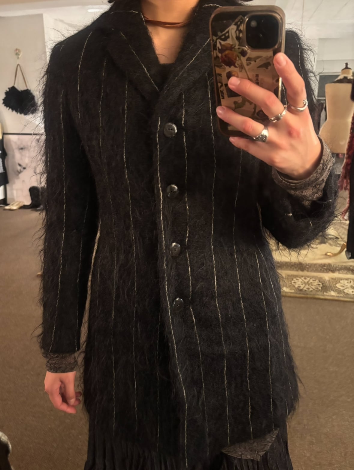 【JUNKO SHIMADA】stripe shaggy coat