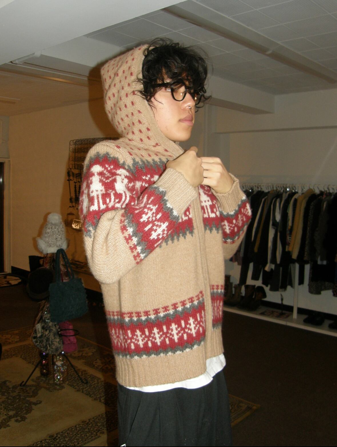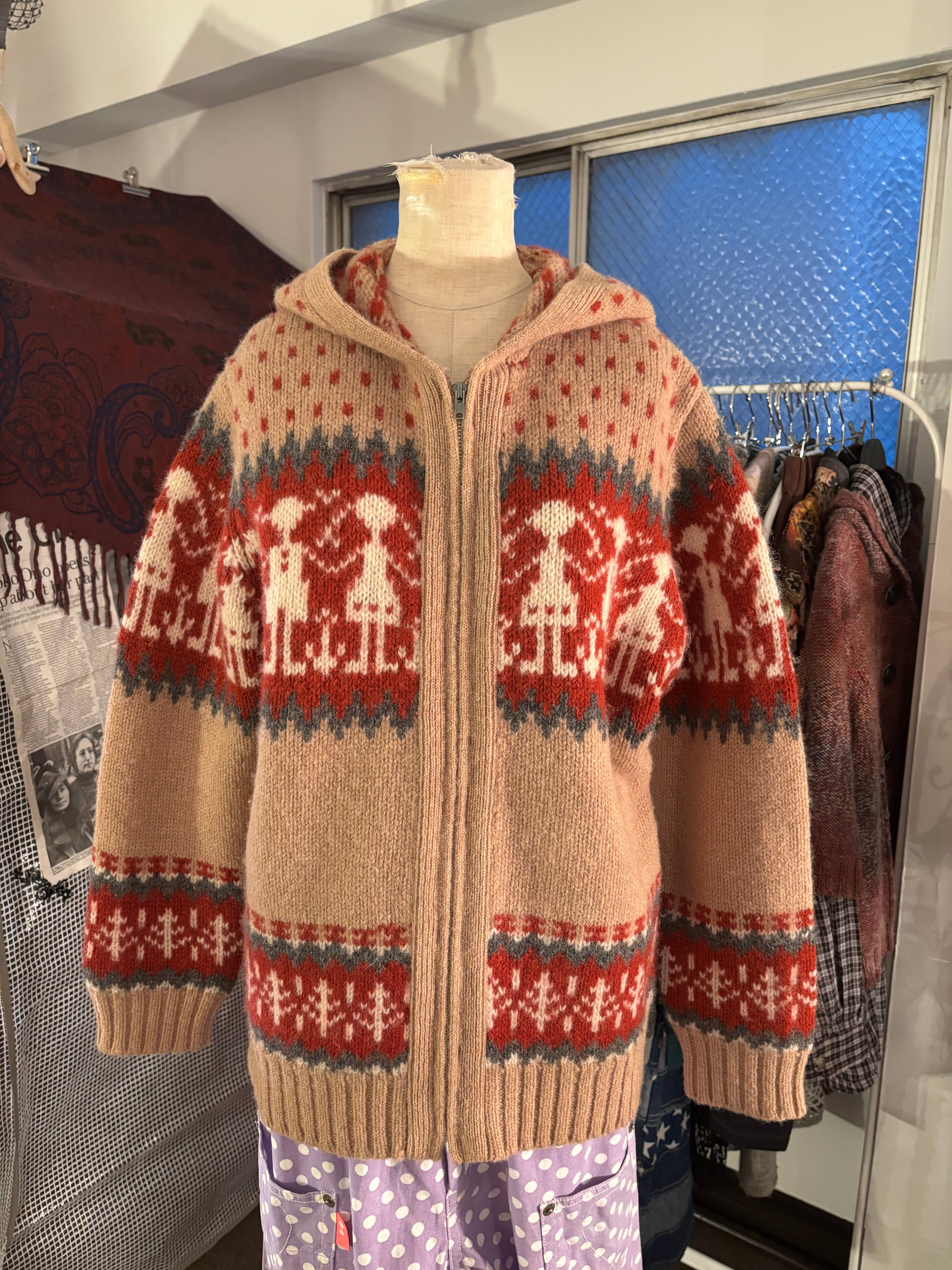 苺のフード付きニットフーディー
