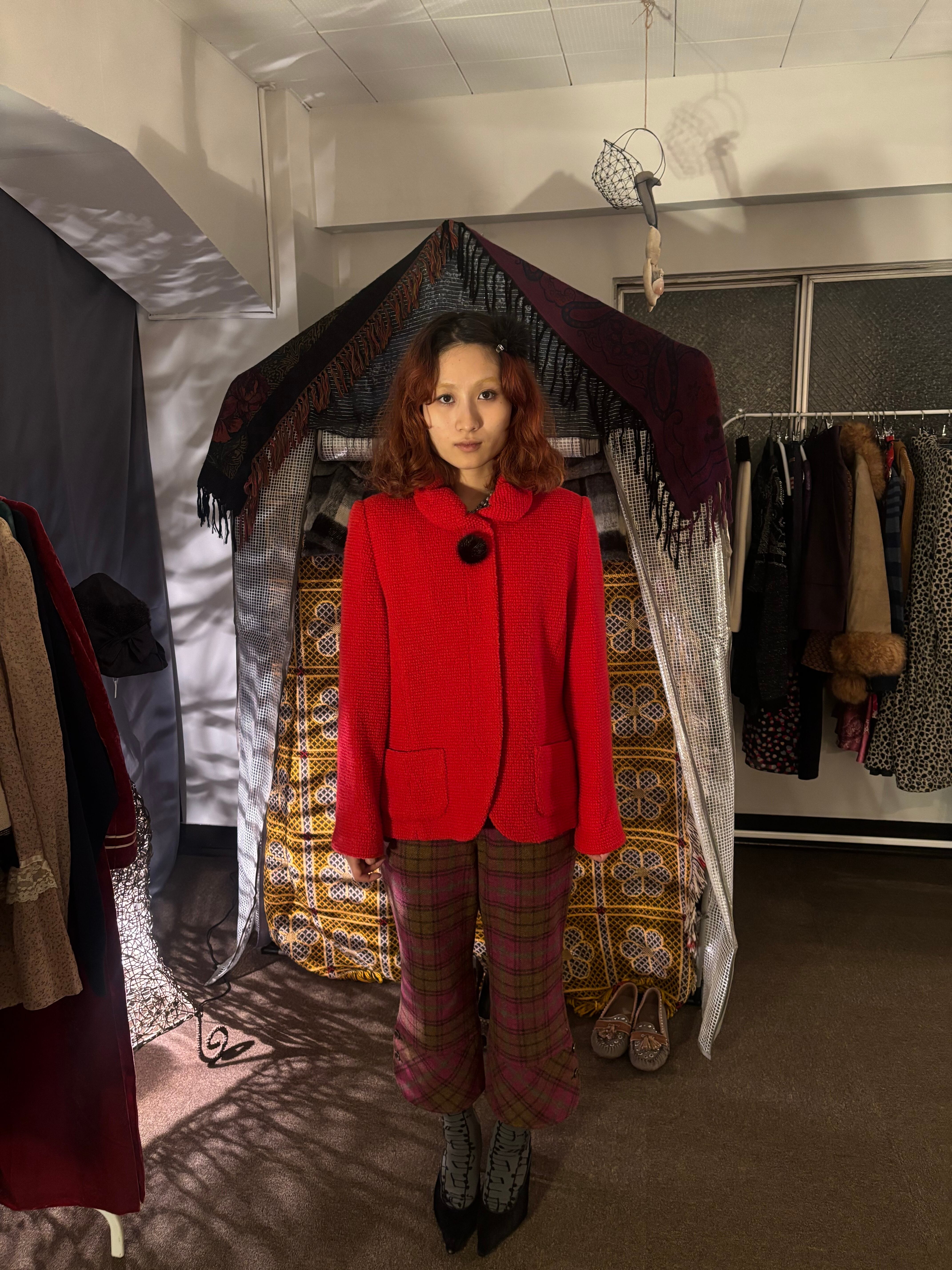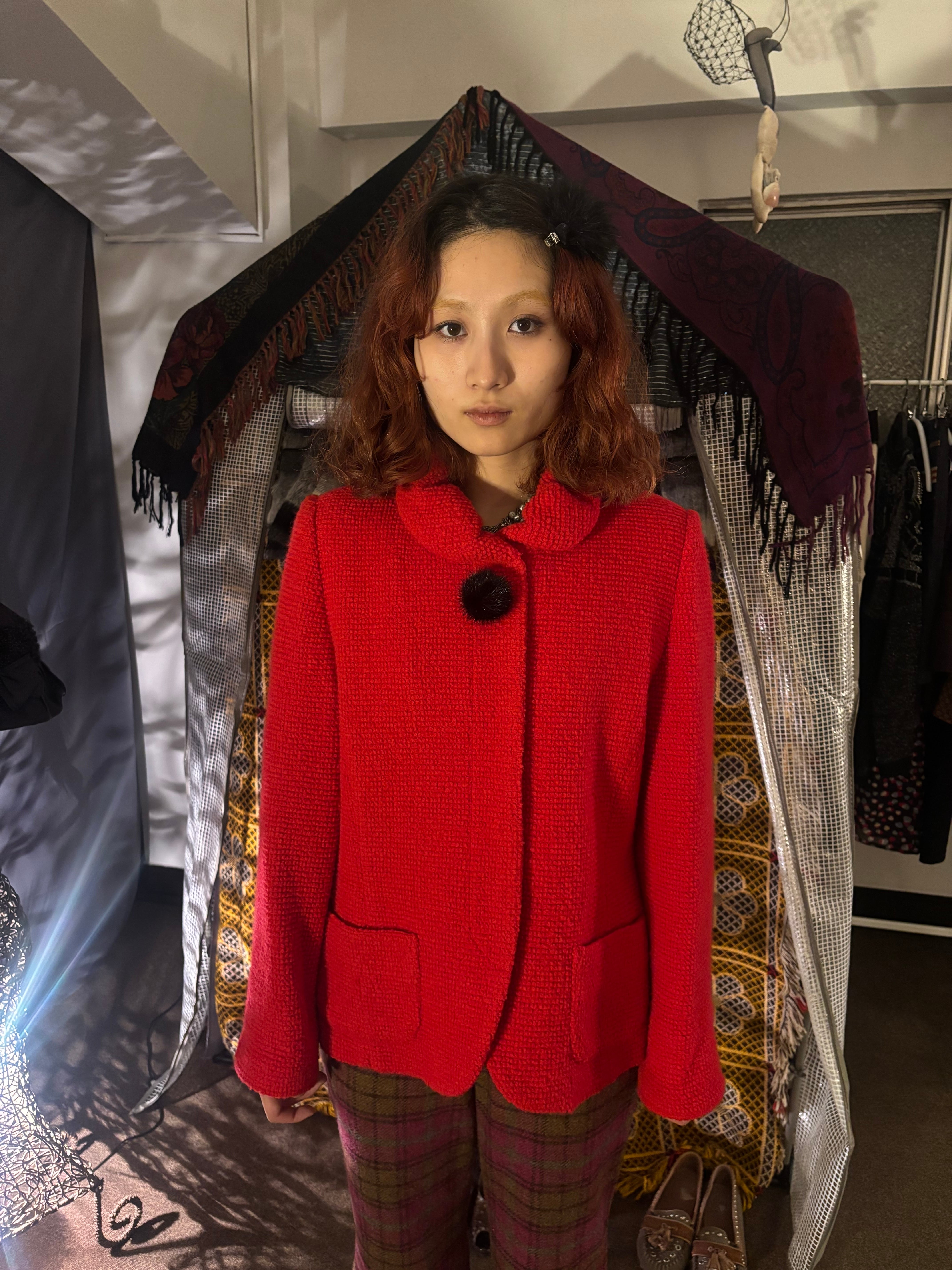 【Estimated 1980s–90s /Japan label】Red-Pink Bouclé Jacket