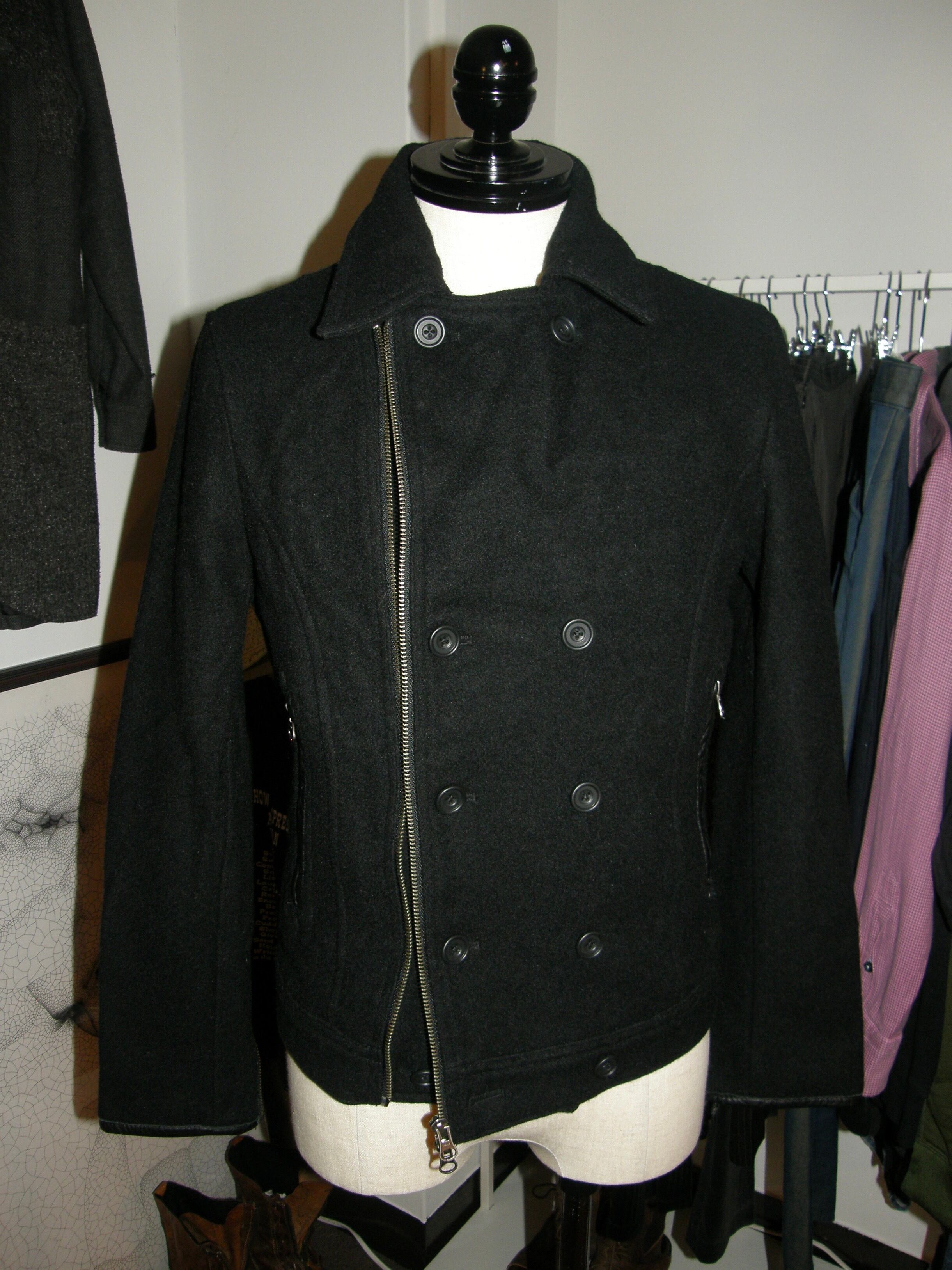 Pコートをベースに、ライダースジャケットの要素を掛け合わせたようなデザインが特徴。