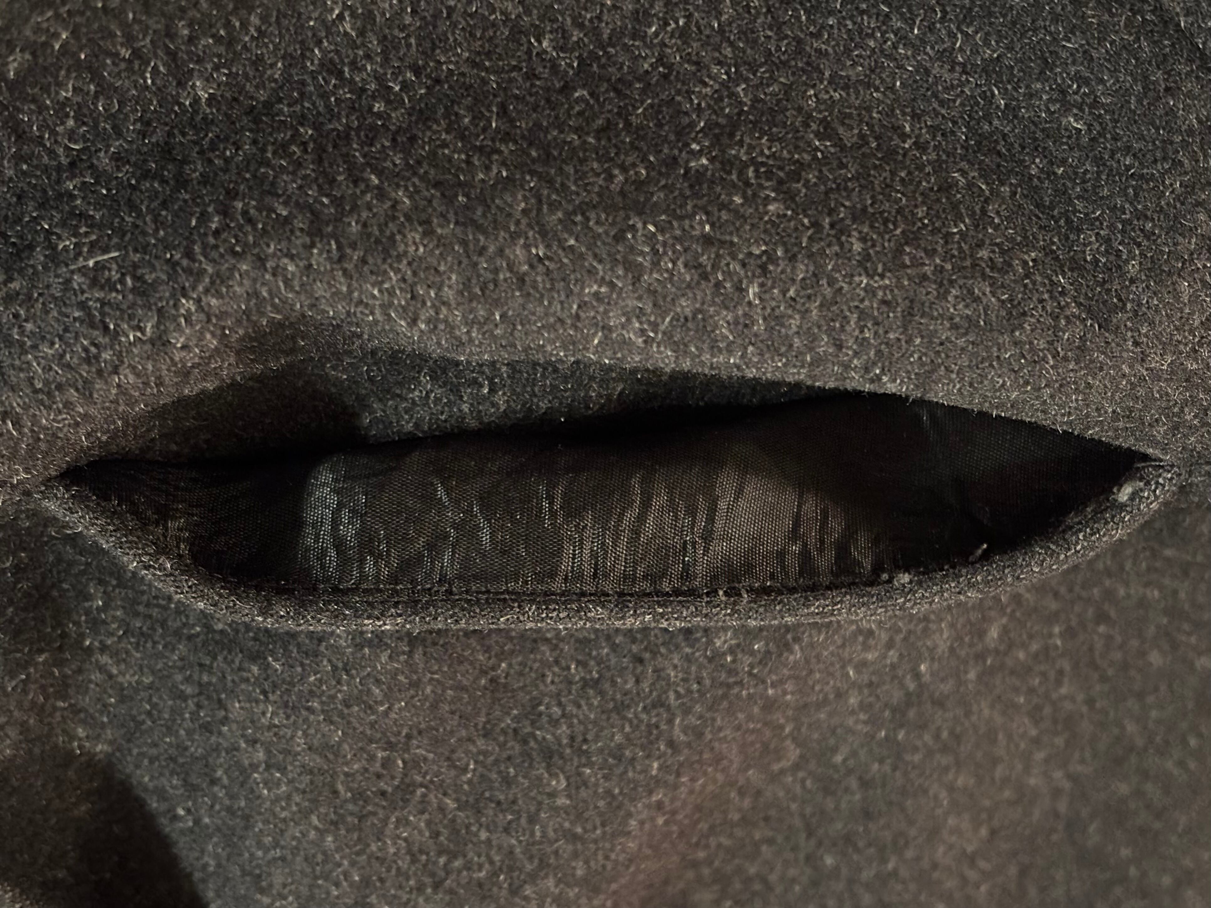 ポケット内側の裏地との繋ぎ目にほつれあり