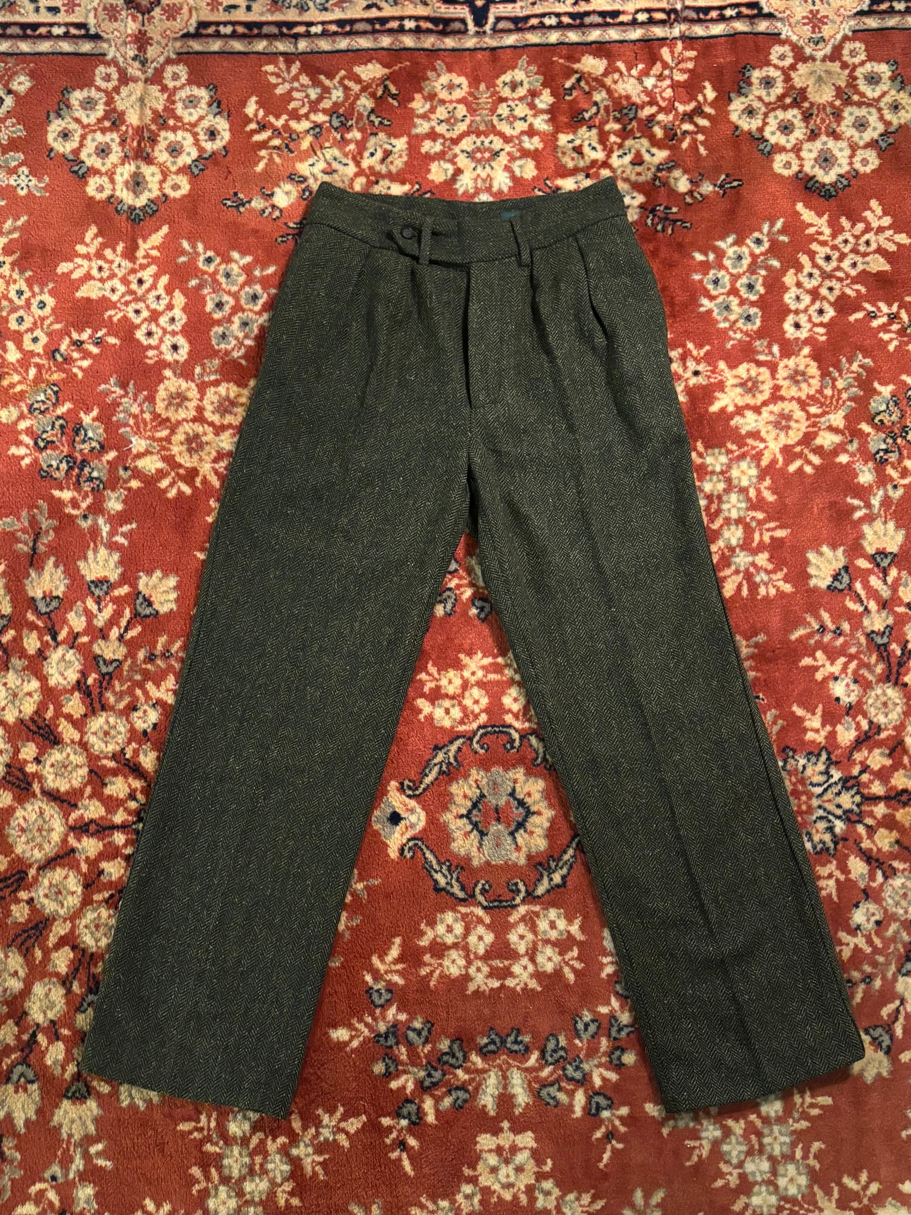 【Noen】Olive&Mustard Herringbone Tuck Trousers