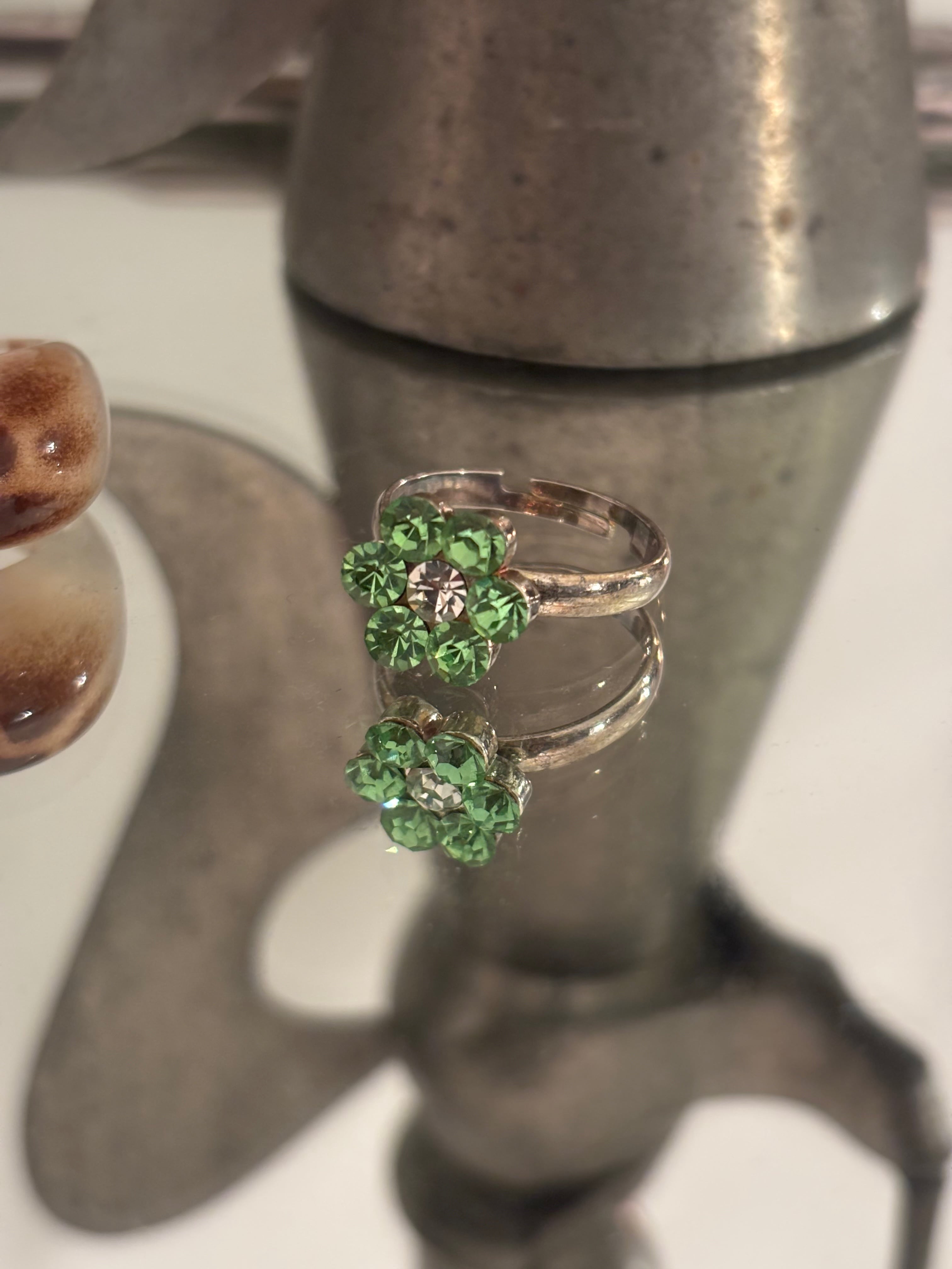 Green Crystal Flower Ring