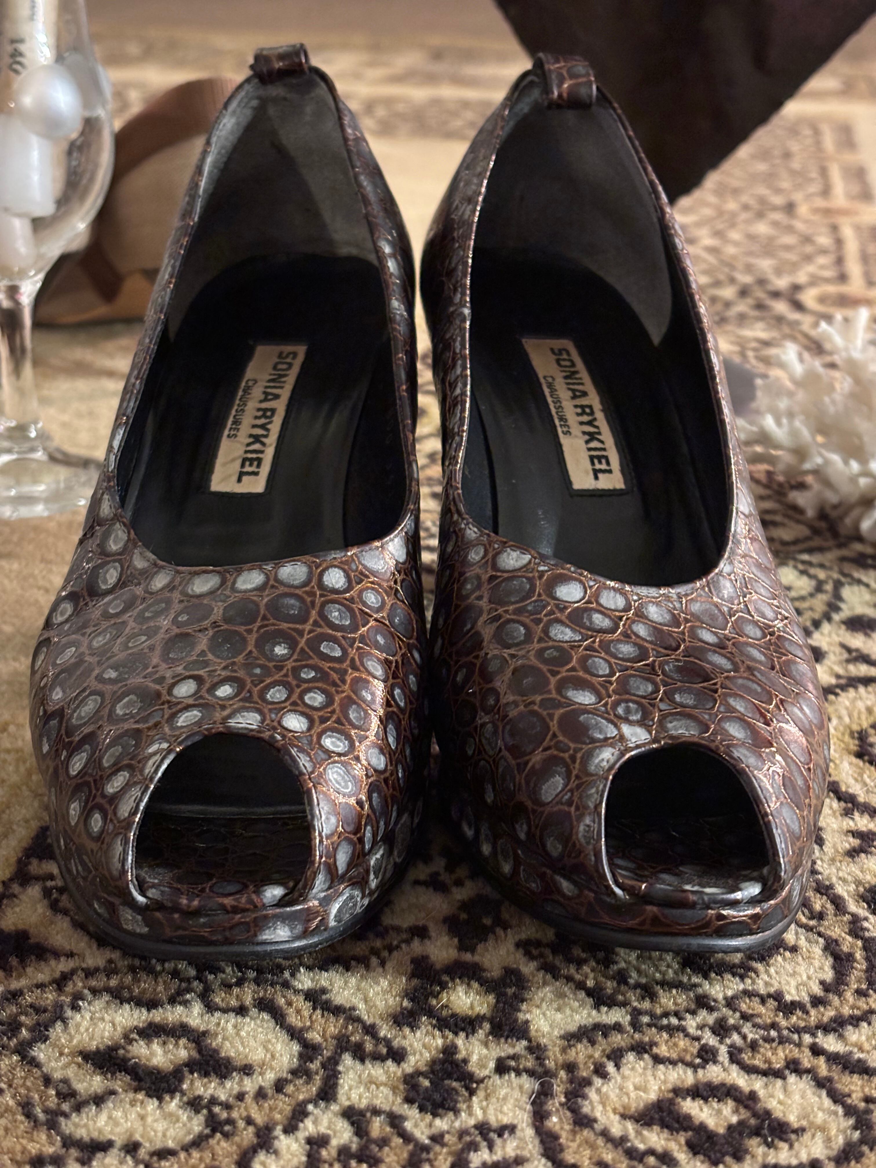 【SONIA RYKIEL CHAUSSURES】Croc-Embossed Leather Peep-Toe Heels