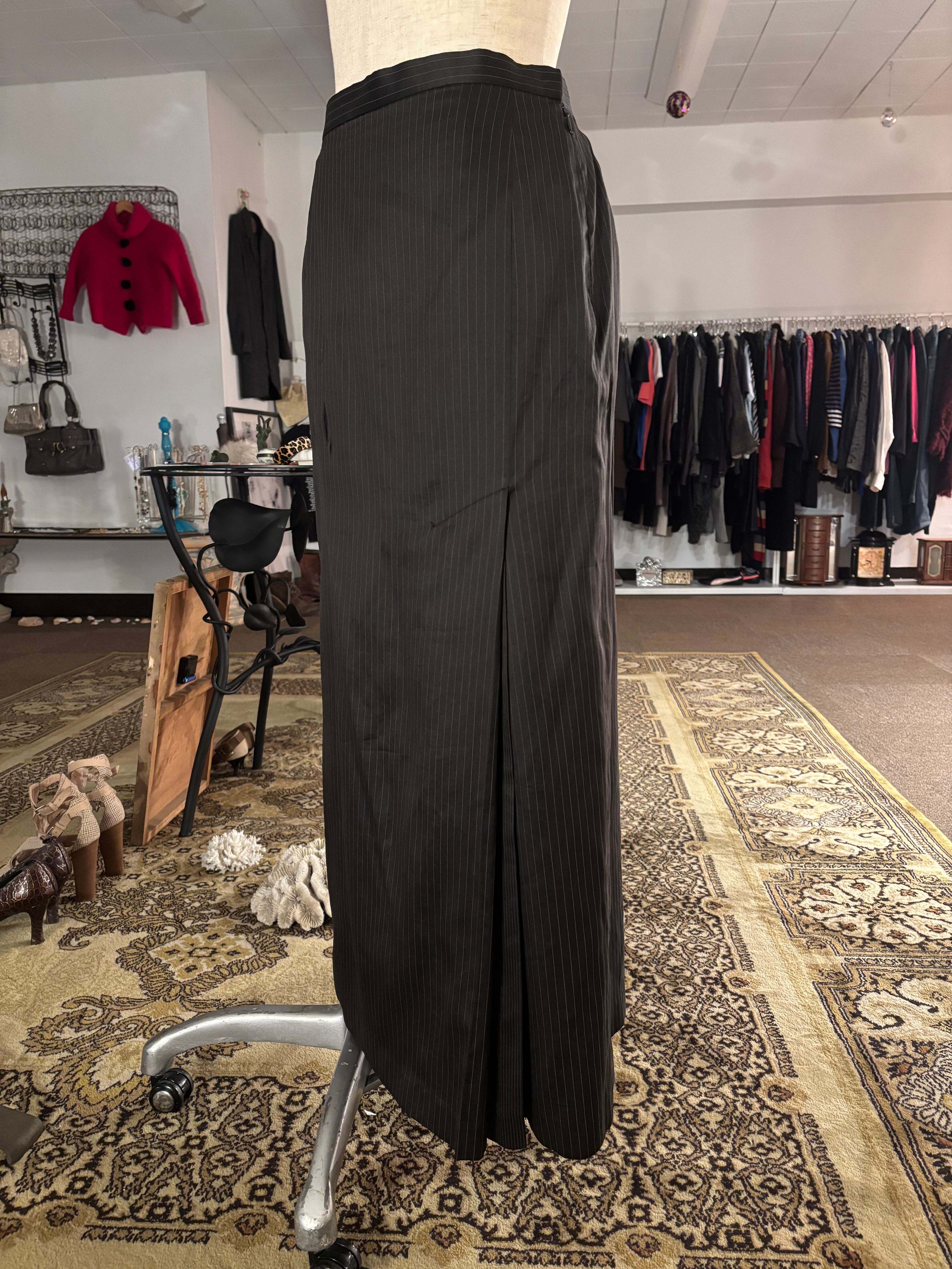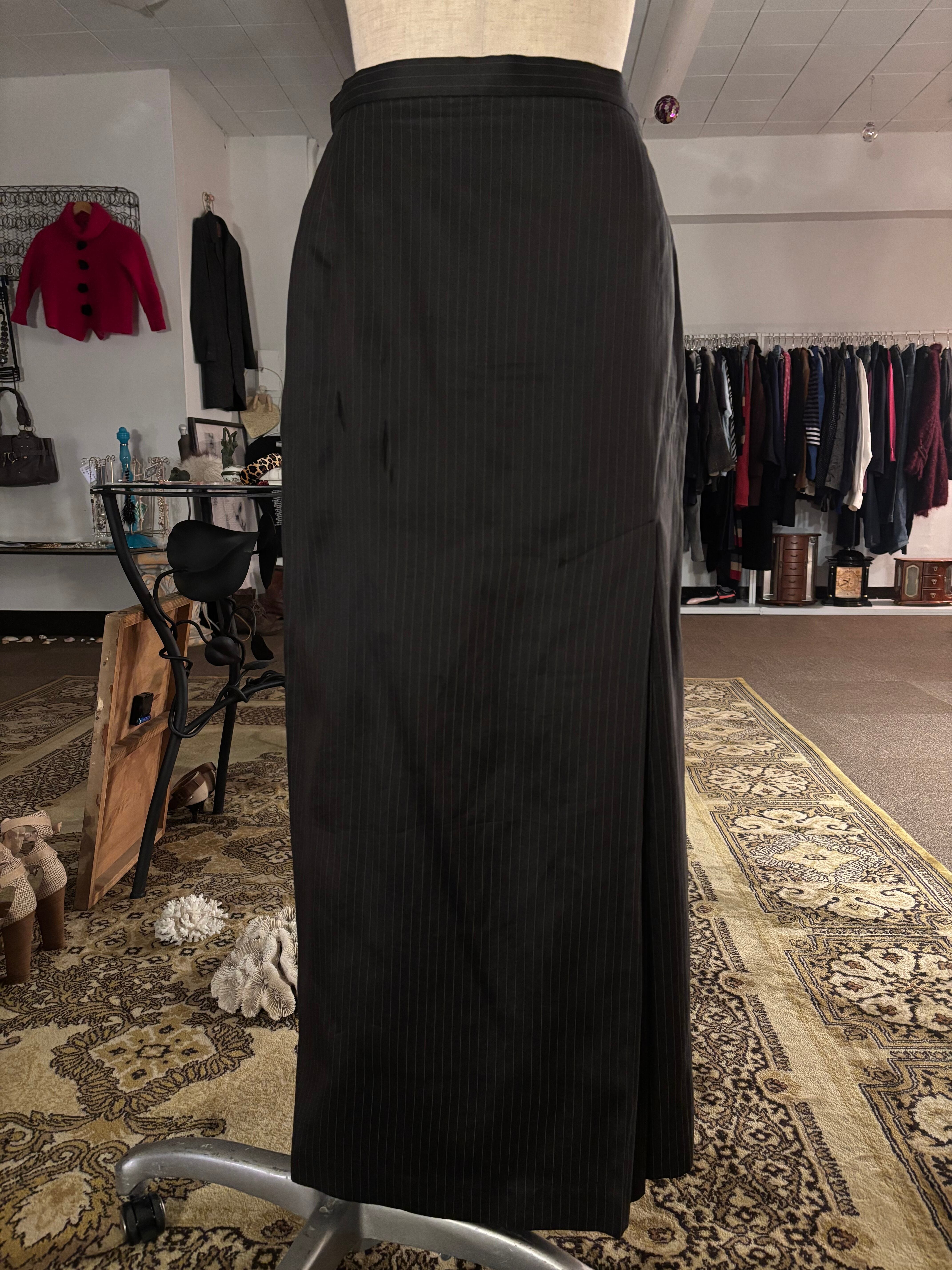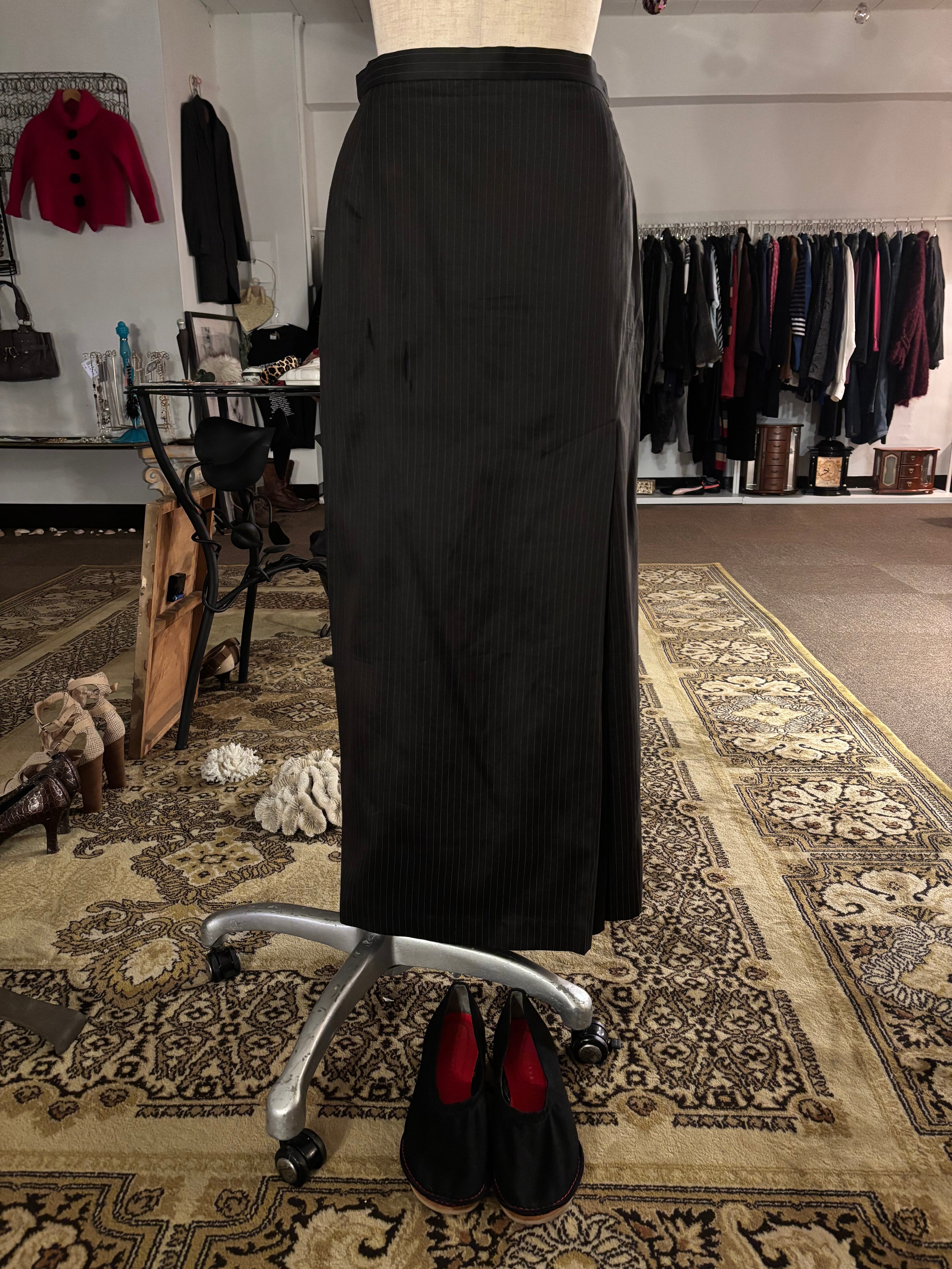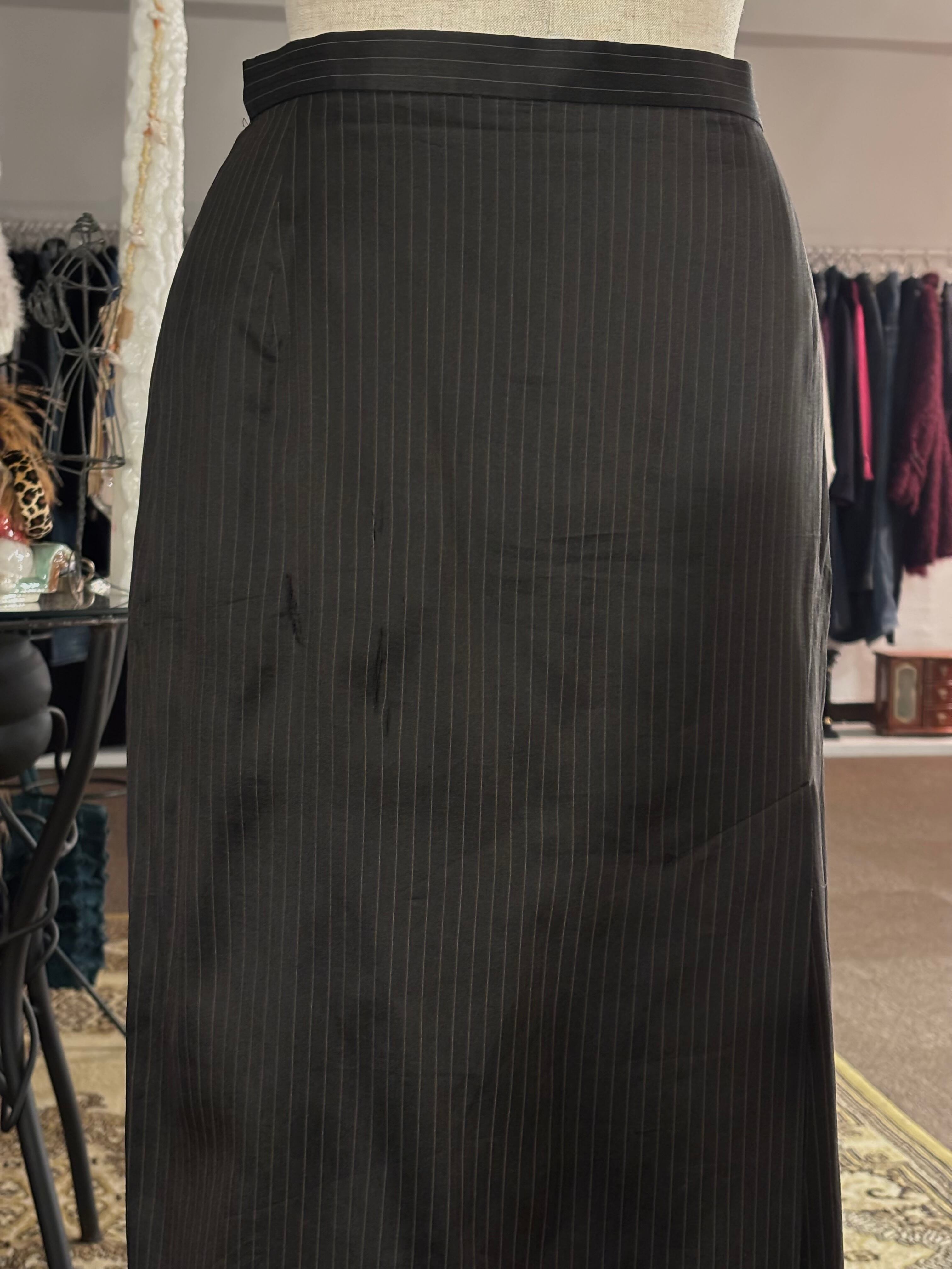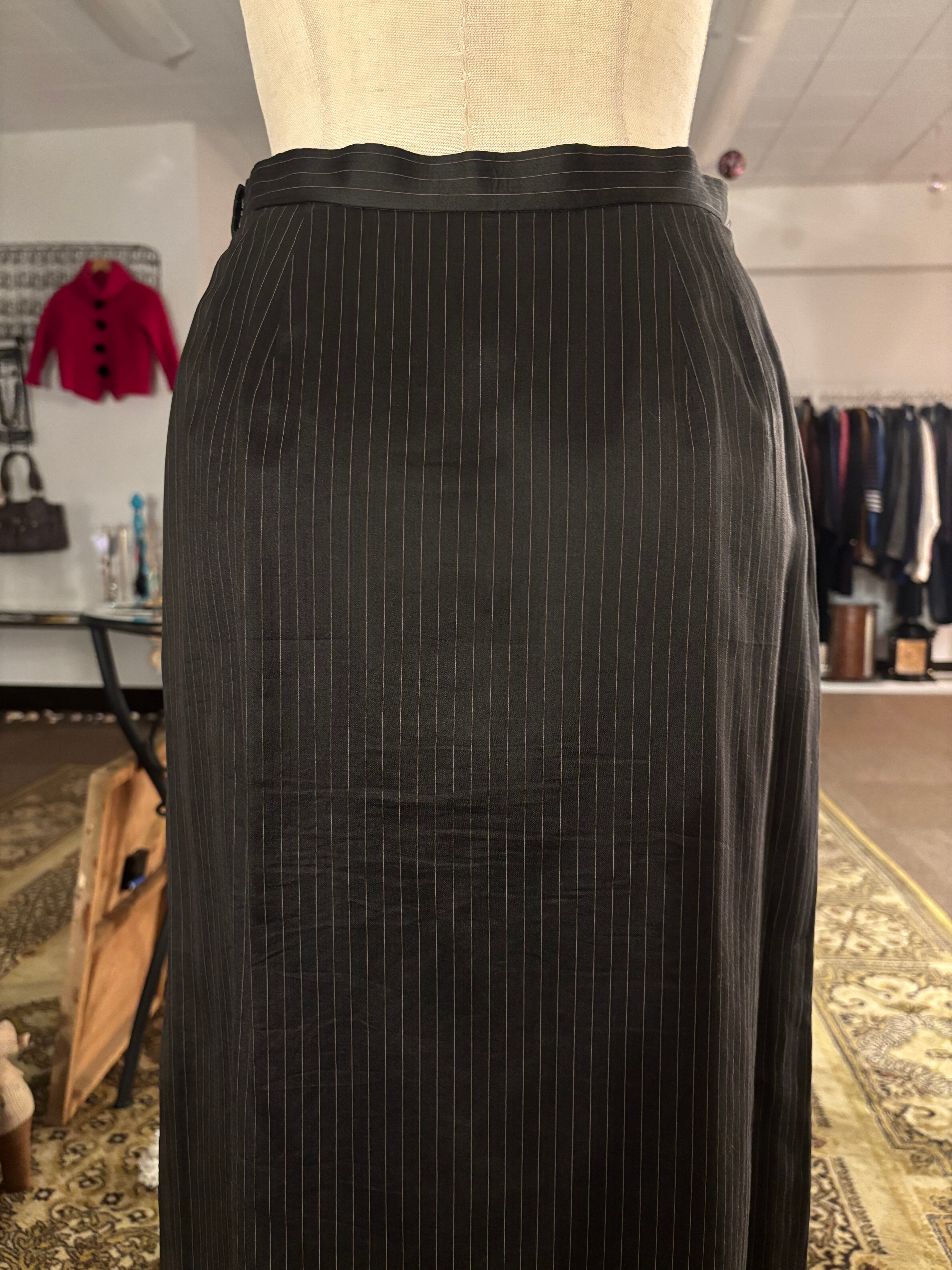 スリットの内側だけ細かくなっているストライプがベーシックなアイテムながらさりげない遊び心の効いたスカート。