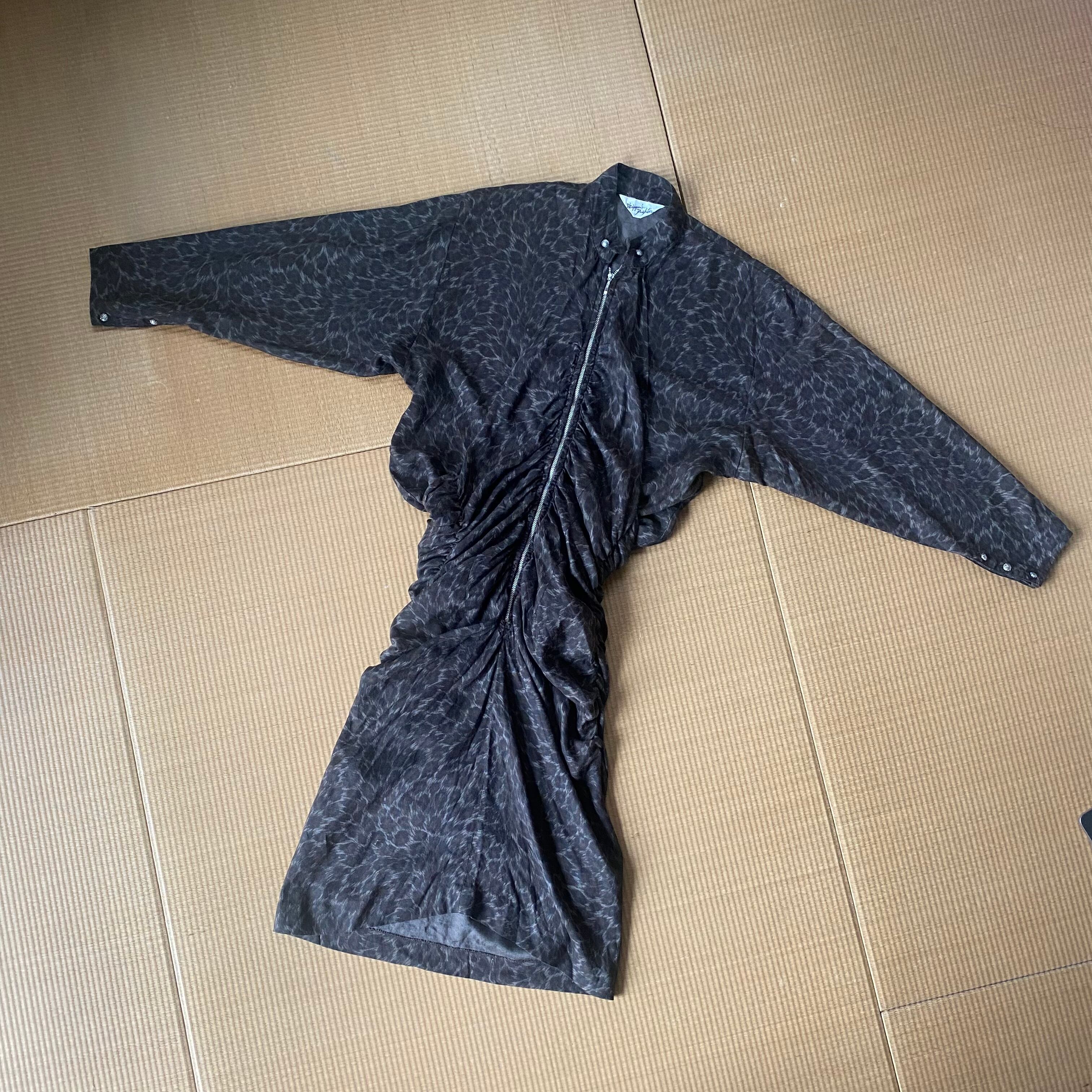 スタンドカラーのブラウスにタイトミニスカートがくっついたようなかなり珍しい構造のワンピース。