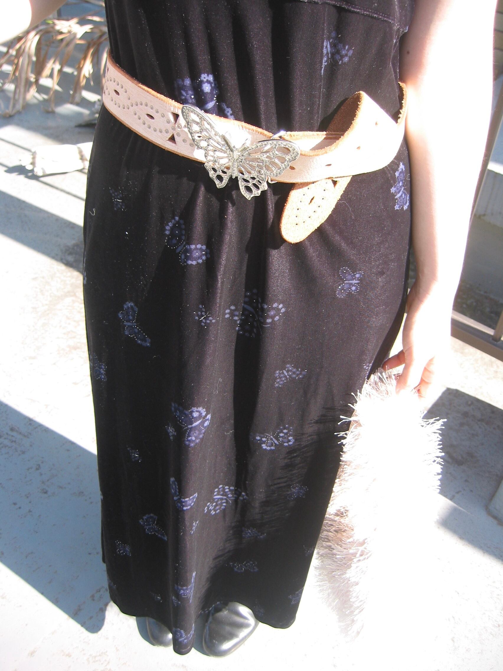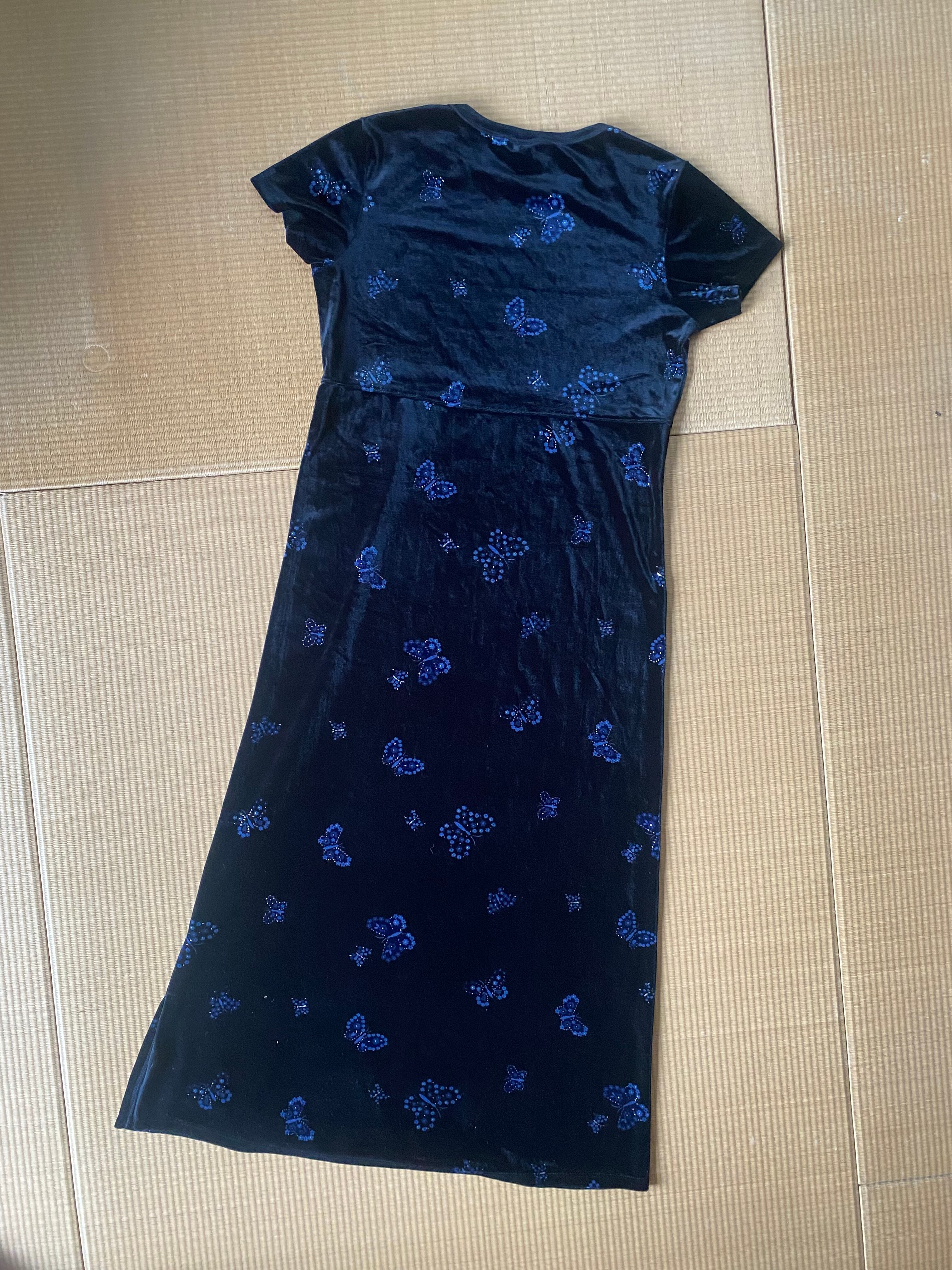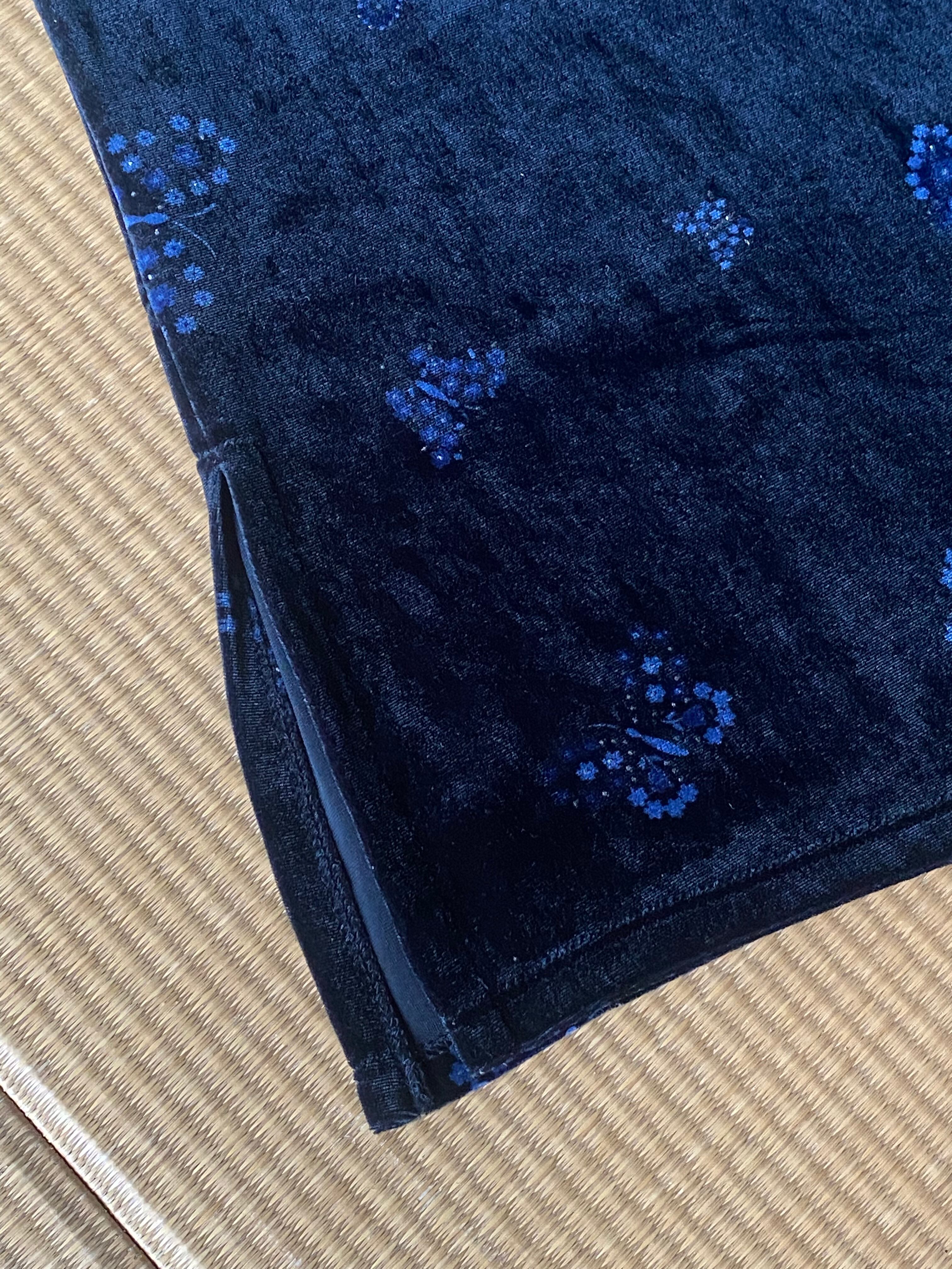 黒のベロアに二色のブルーとゴールドでプリントされたお花でできた蝶々がとても可愛いですεïз