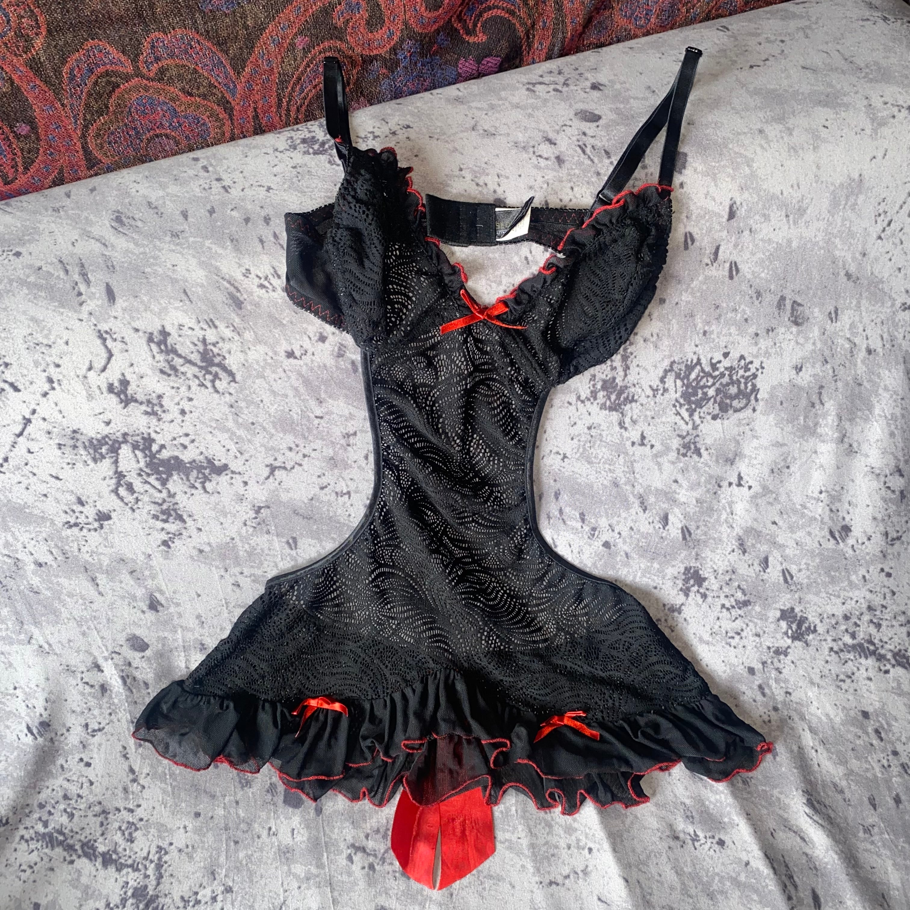 black lace and red ribbon mellow lingerie