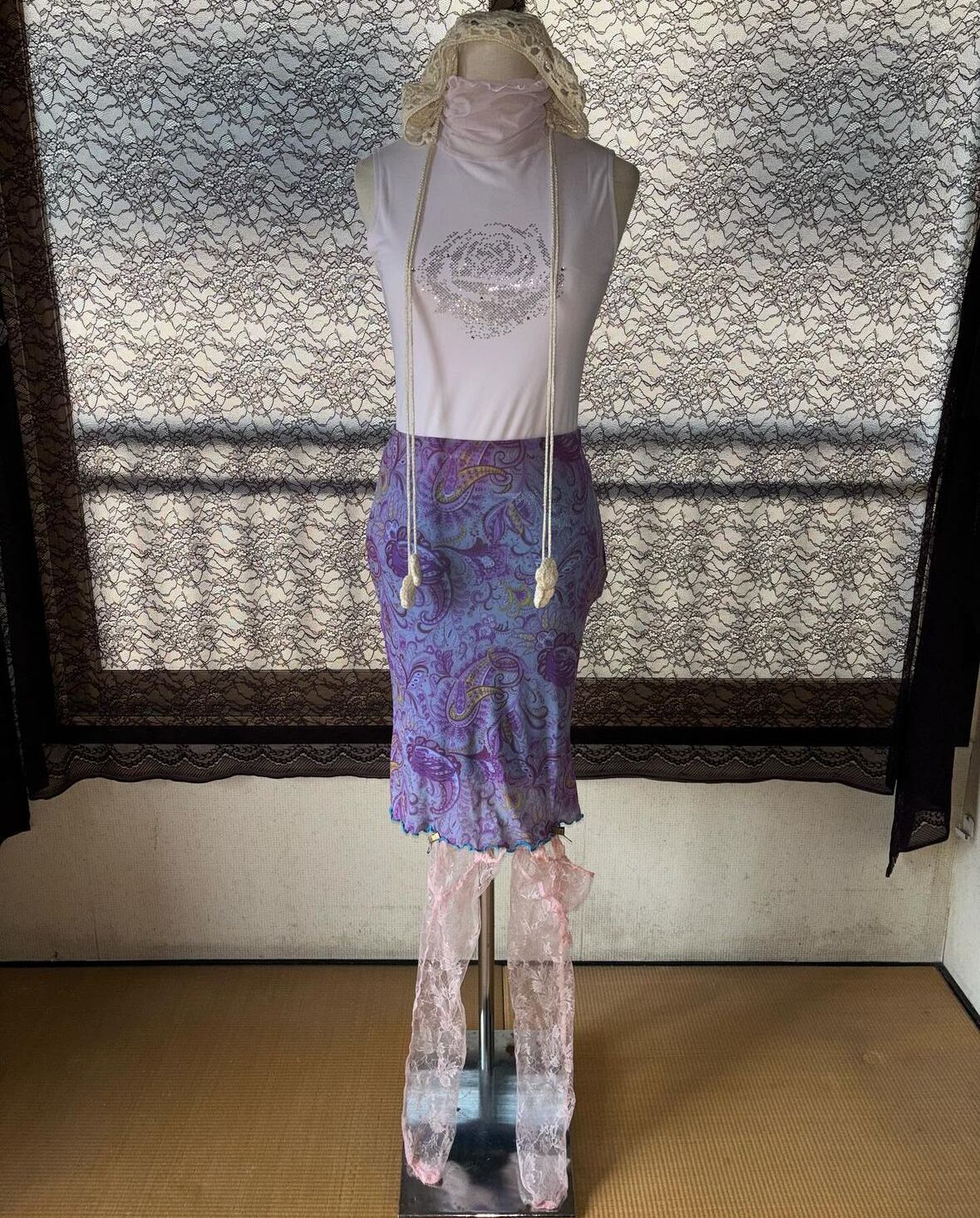 paisley tight skirtとrace socksとの合わせがとてもおすすめです。