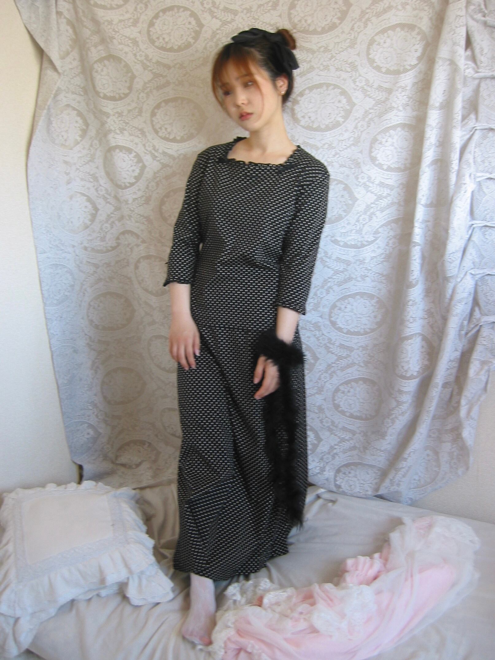 水玉柄に縁どりのメロウ、下着のようなサテンリボンがフレンチガーリー要素全開でフランスパンを持って歩いたら似合いそう.。