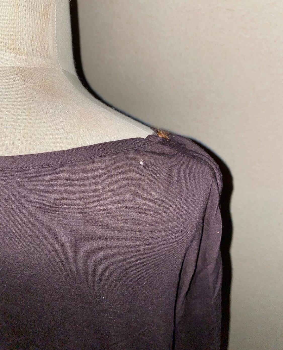 後身頃肩あたりに目立たない程度ですが小さな穴がございます為少しお値段お下げしての販売です