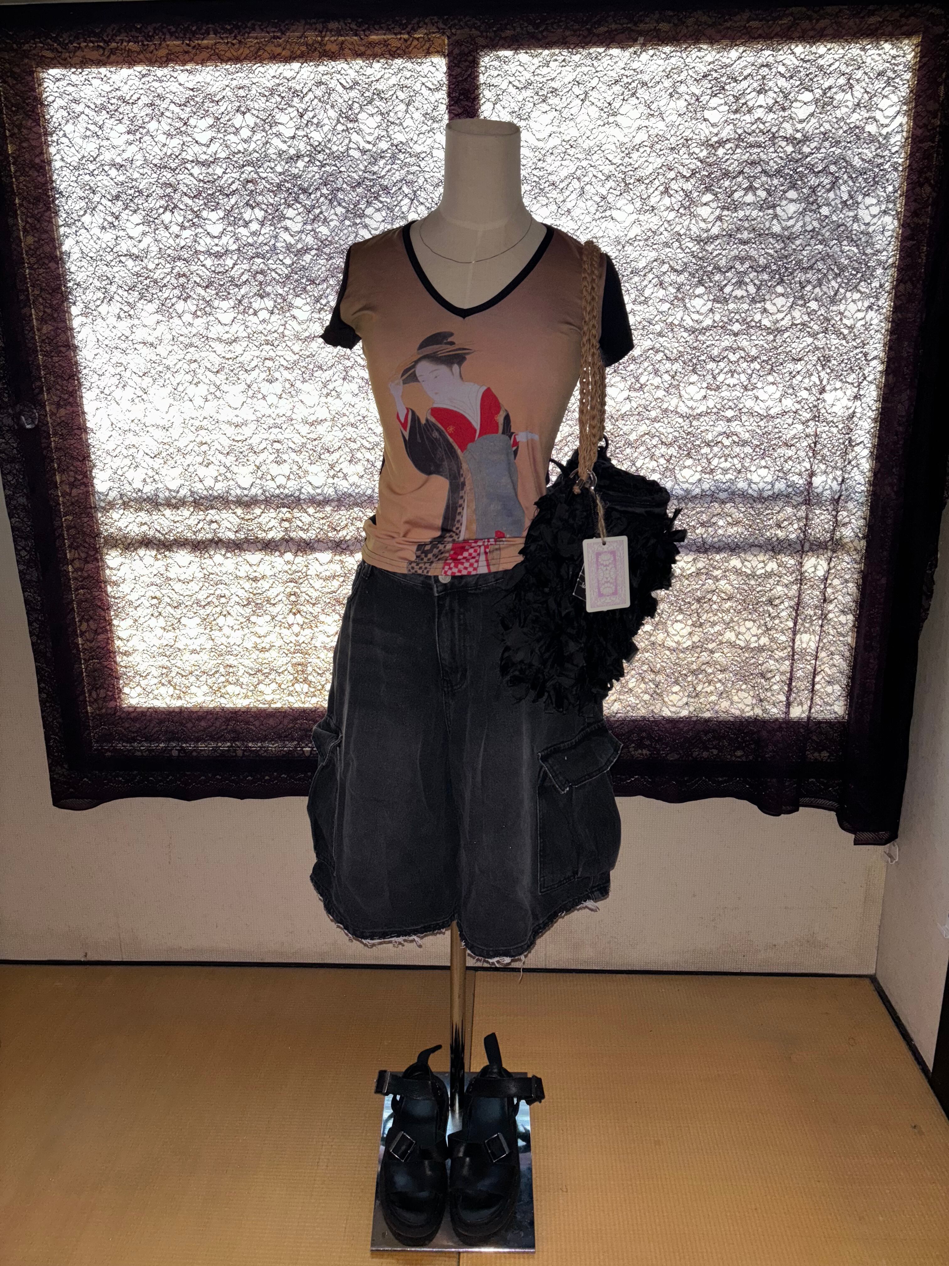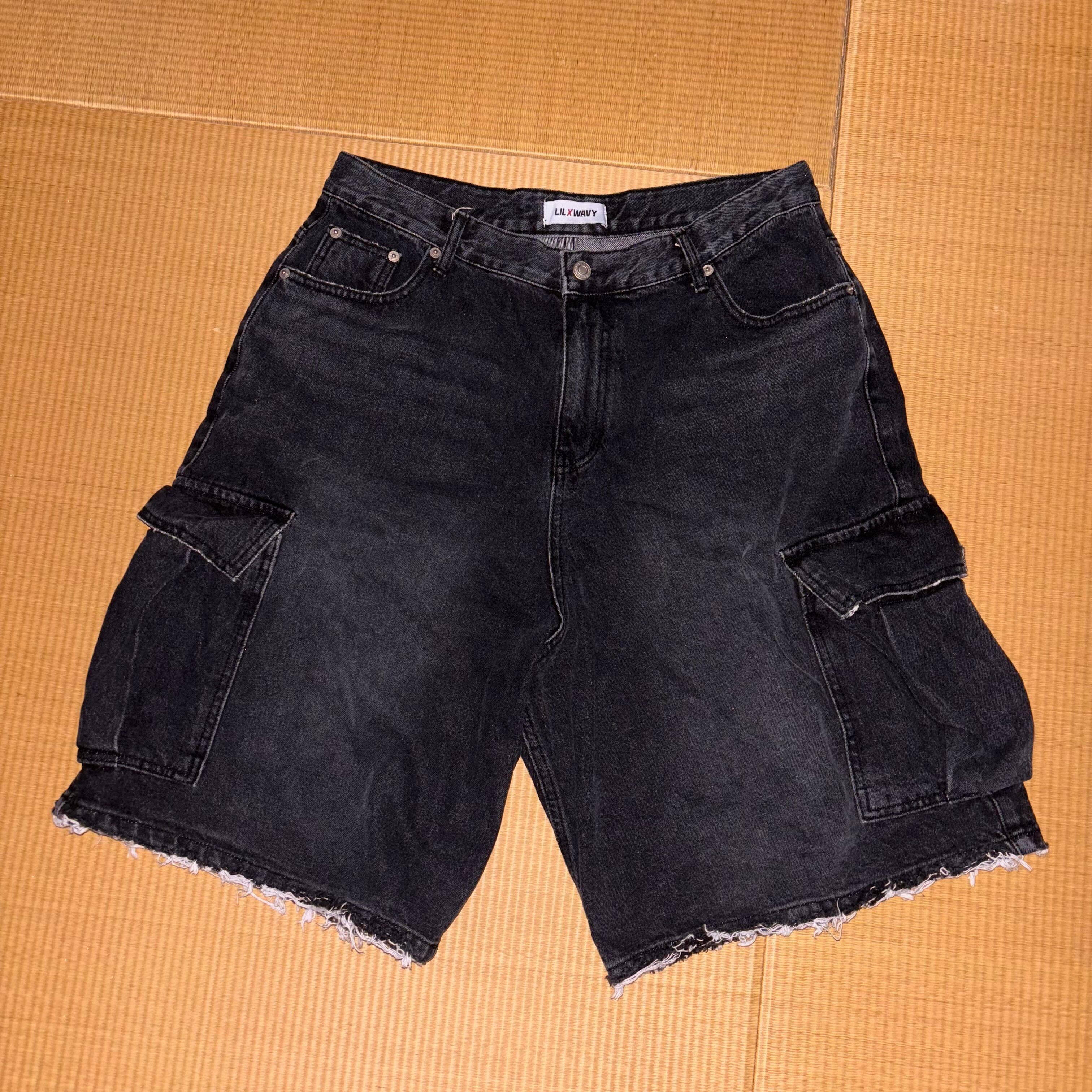 韓国ブランド、Lilxwavyのかなり太めなシルエットが可愛いデニムハーフパンツ。