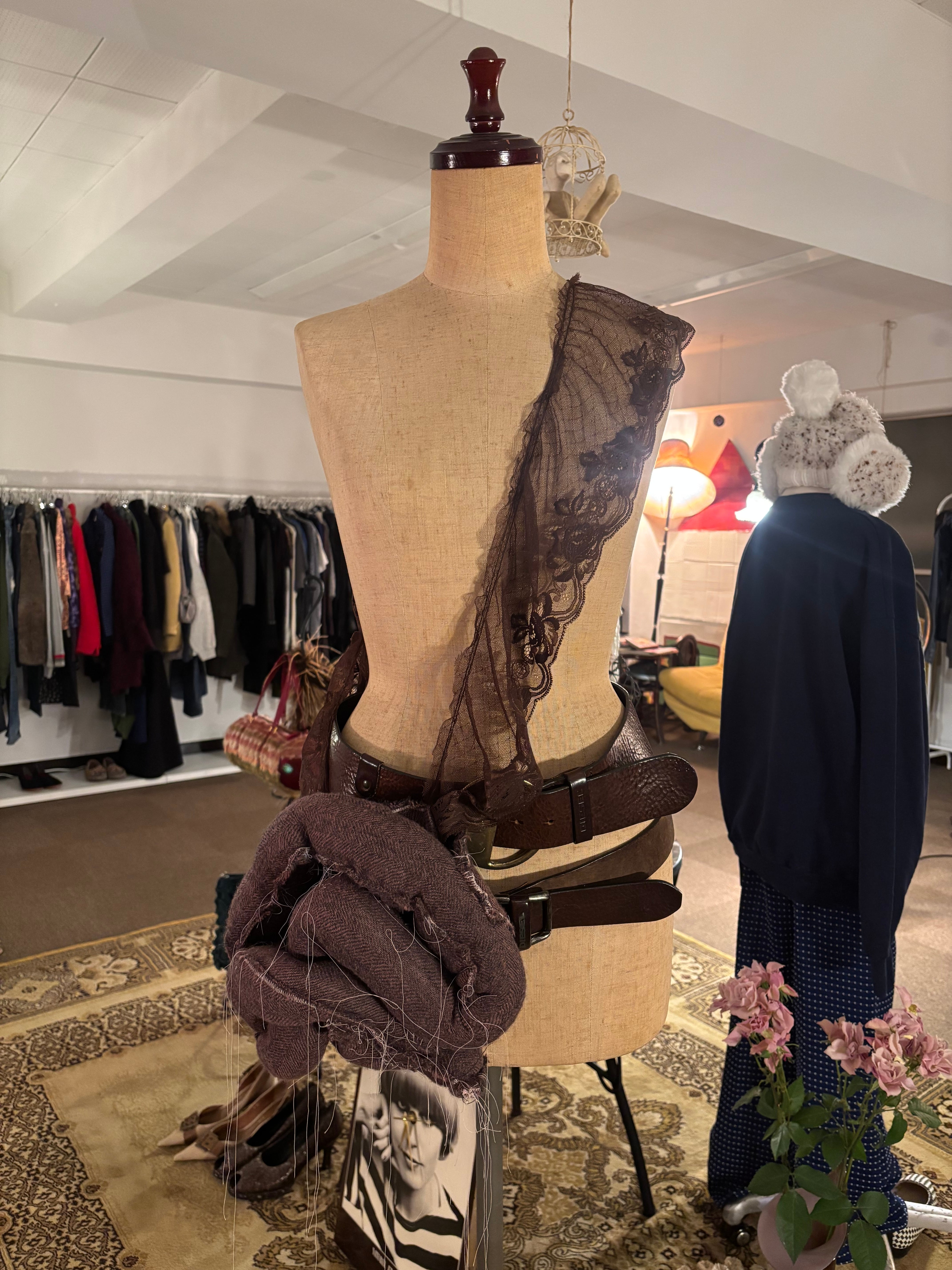 最初は完全自分用で販売するために作った訳ではなかったのですがこれ一つでスタイリングに良い違和感が出て可愛いのでHuhhmのお洋服にも合わせたいな〜と思い限定5つお作り致しましたので宜しければお手に取ってみてください。