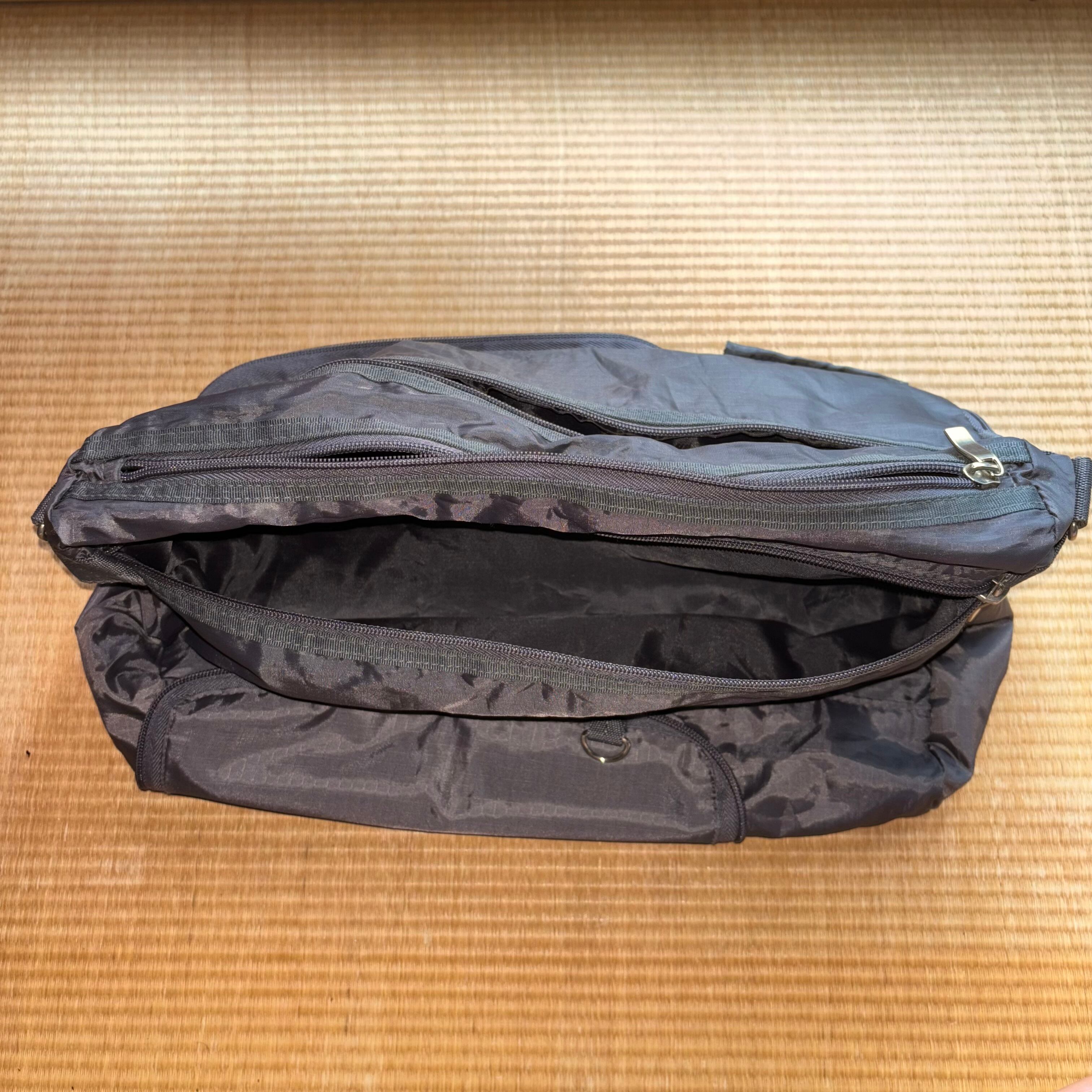ギミック部分を使って折りたたむことができるサコッシュ。