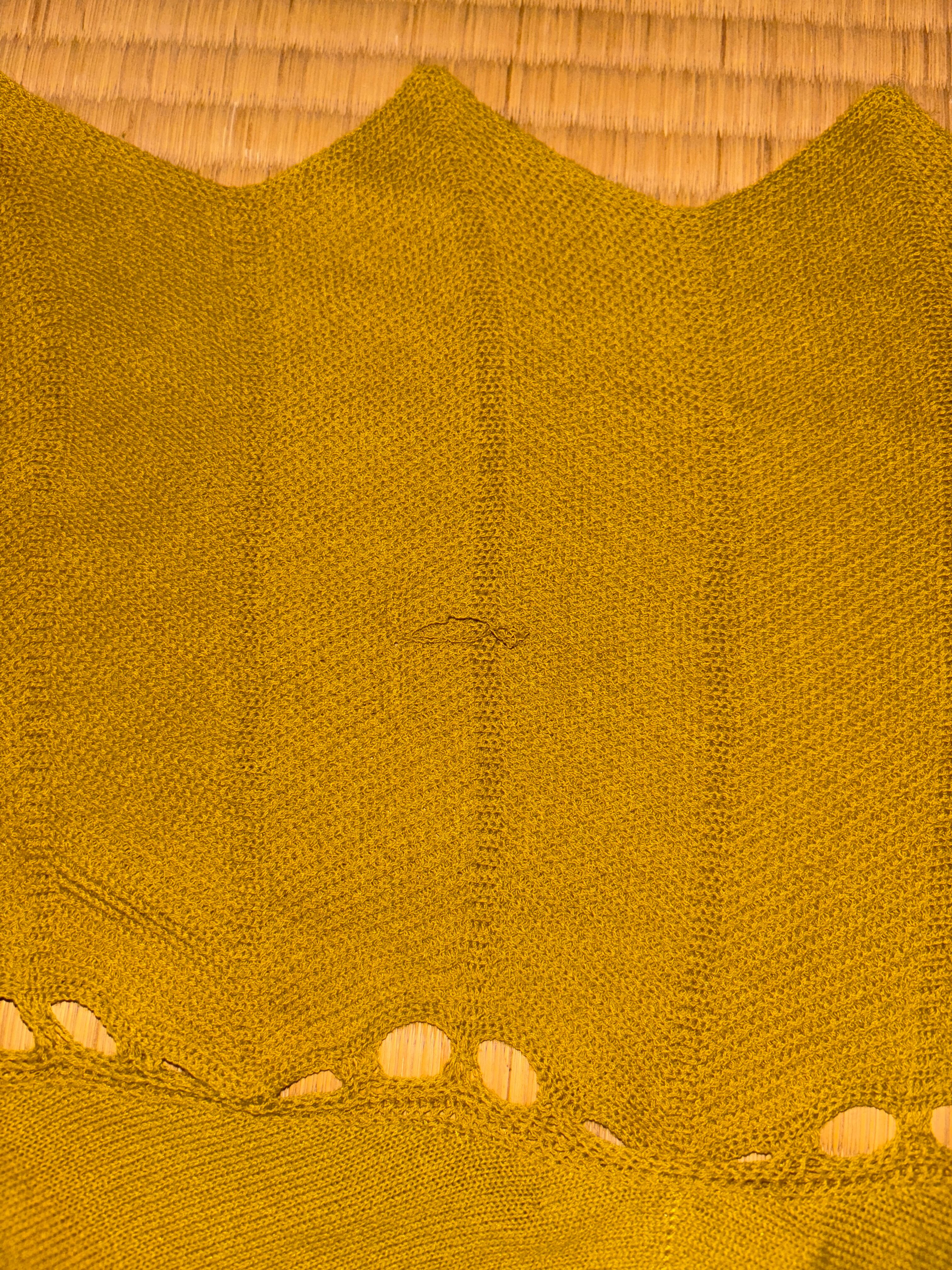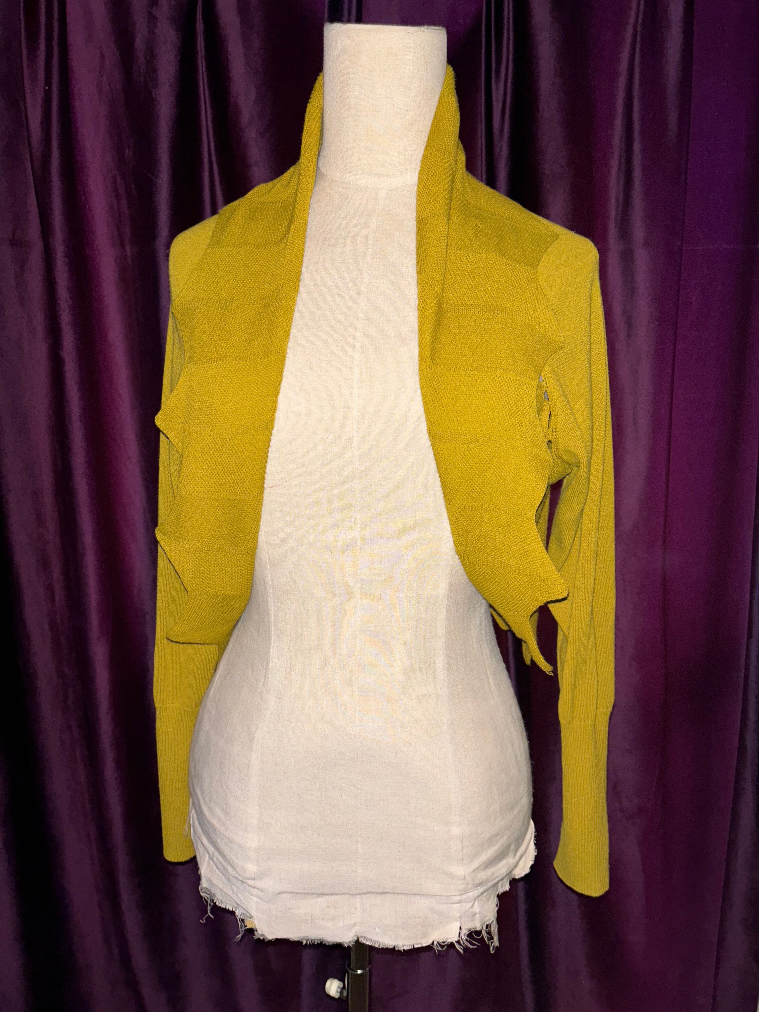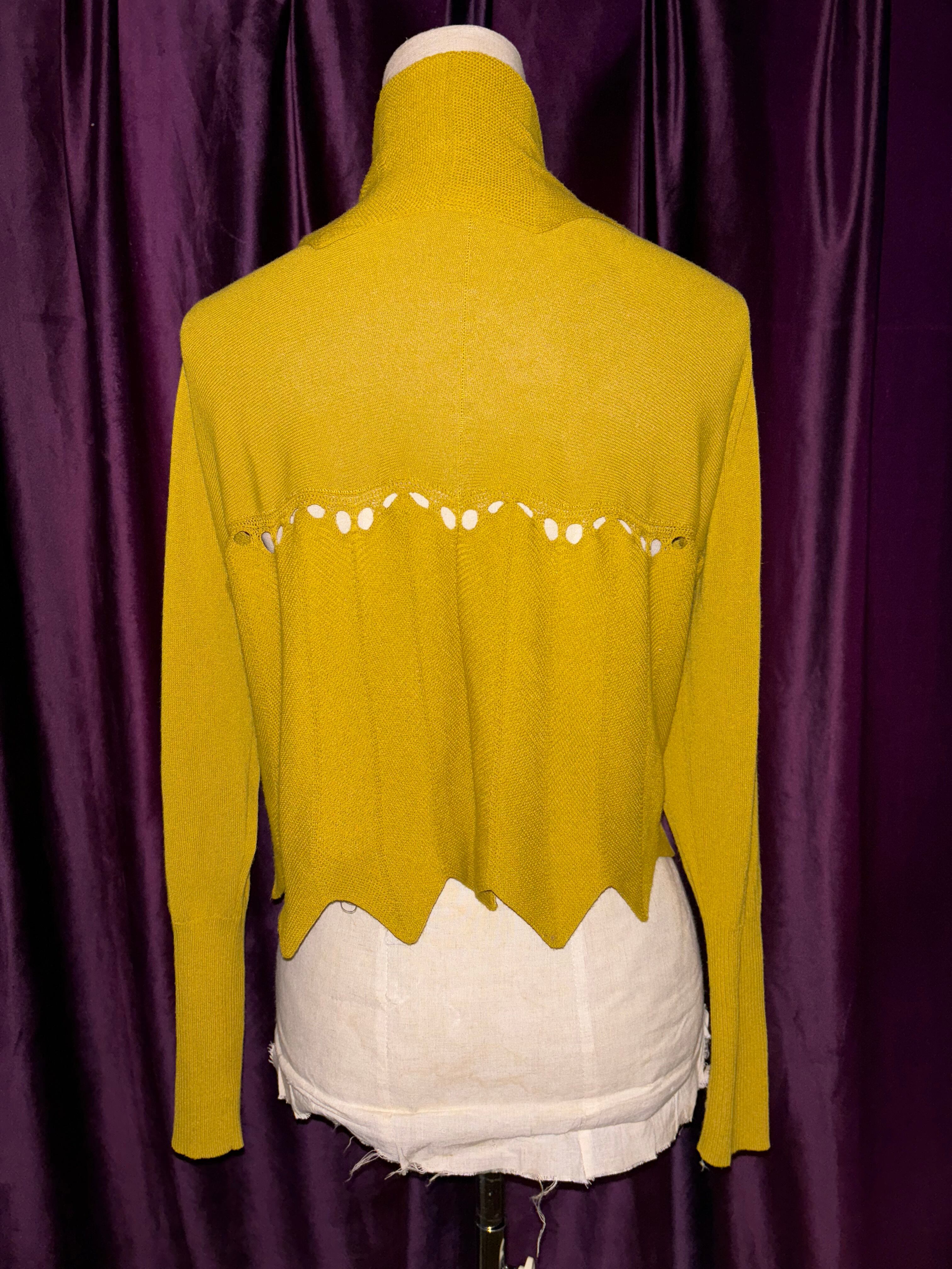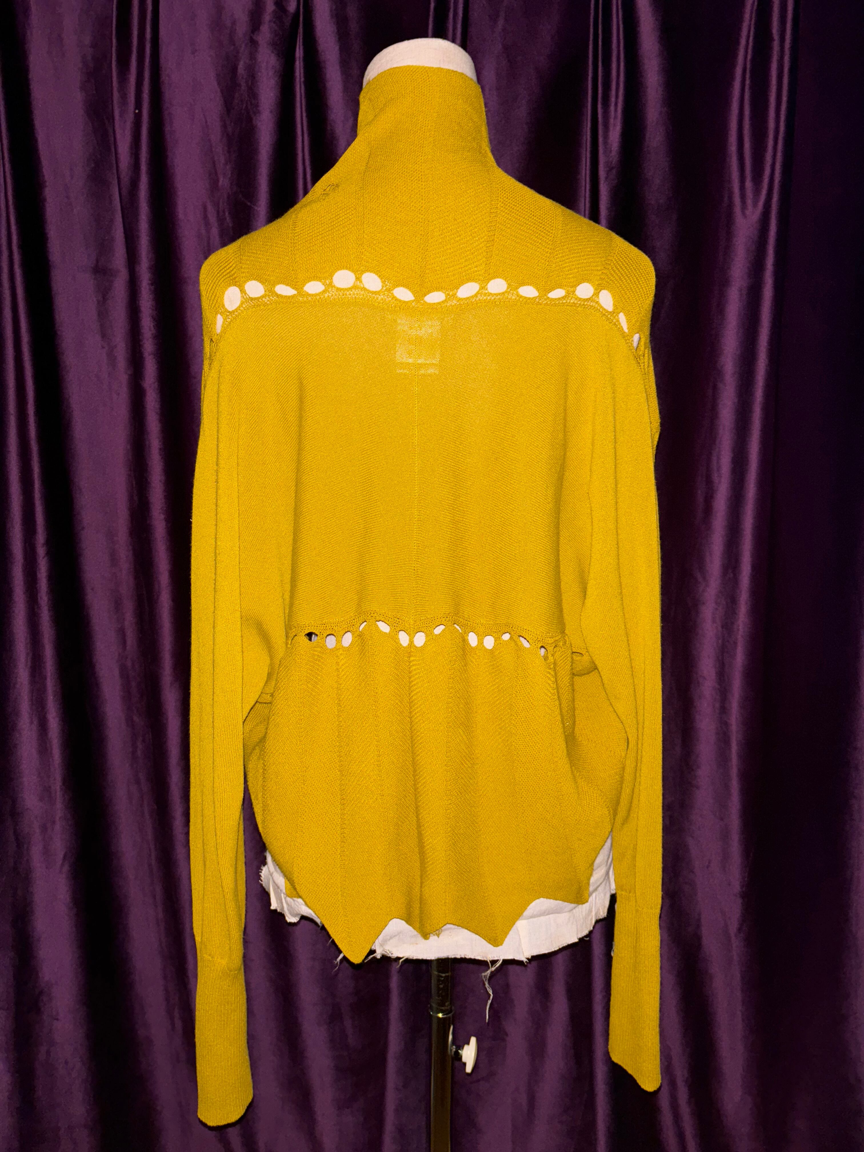ジグザグなカットラインと辛色がマッチしたエッジの効いたカーディガン。