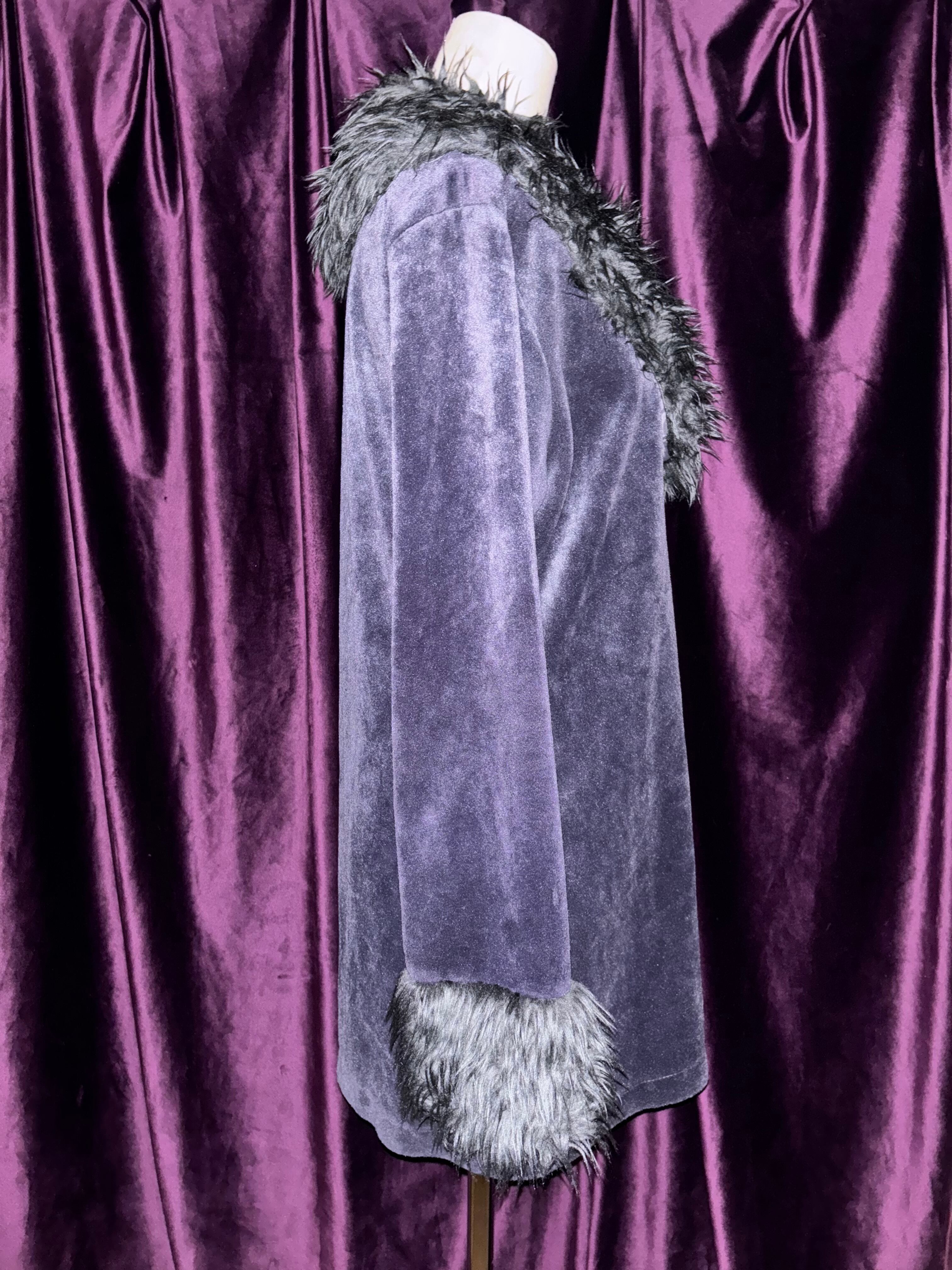 神秘的な色味のベロアに毛足の長めなファーがとても映えていて1枚で主役級のコート。