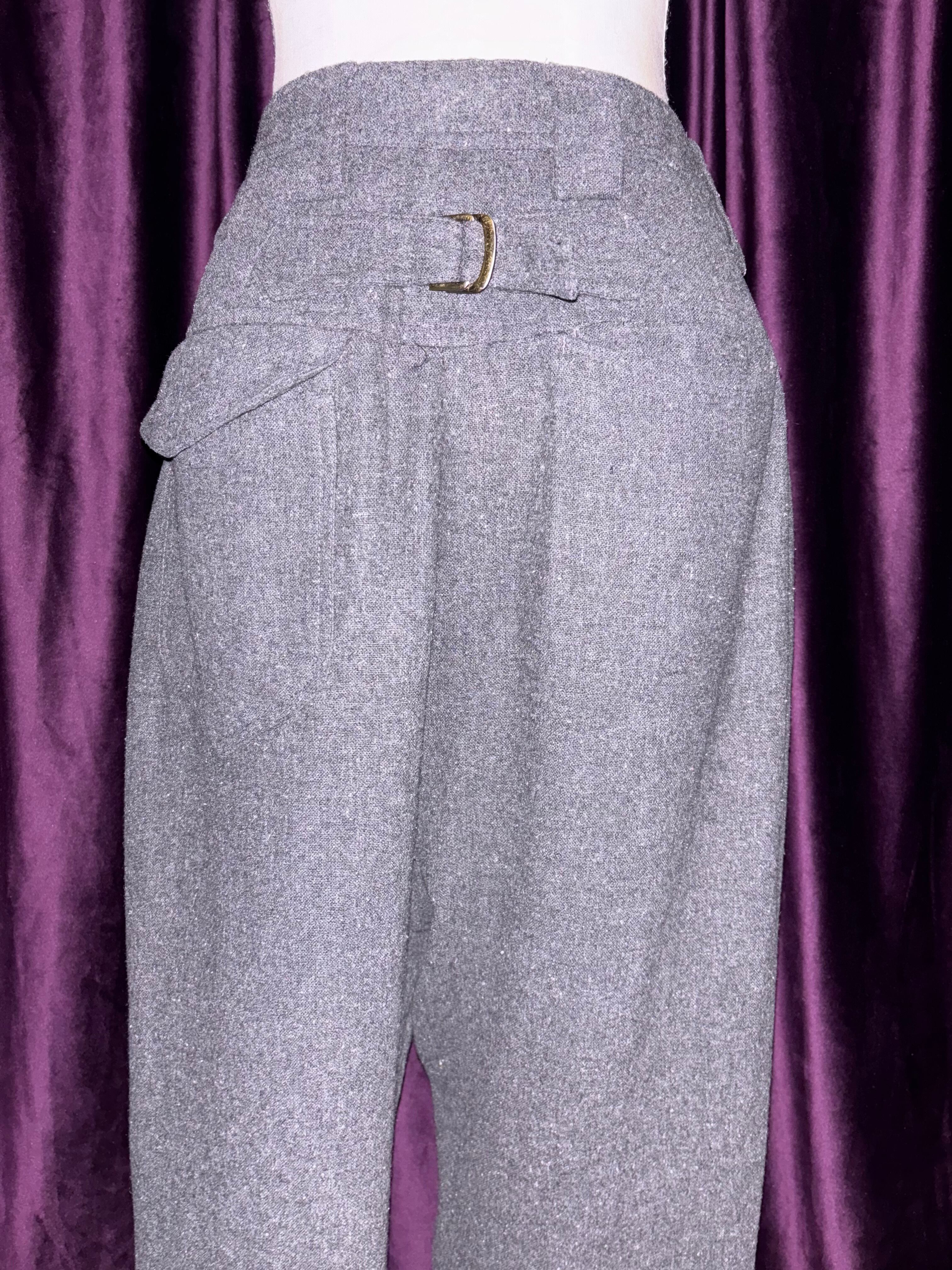 立体的パターンでシルエットがとても綺麗なスラックス。ウエストを隠せばシンプルに、ウエストのボタン部分を出せば少し個性的にご着用して頂けます。