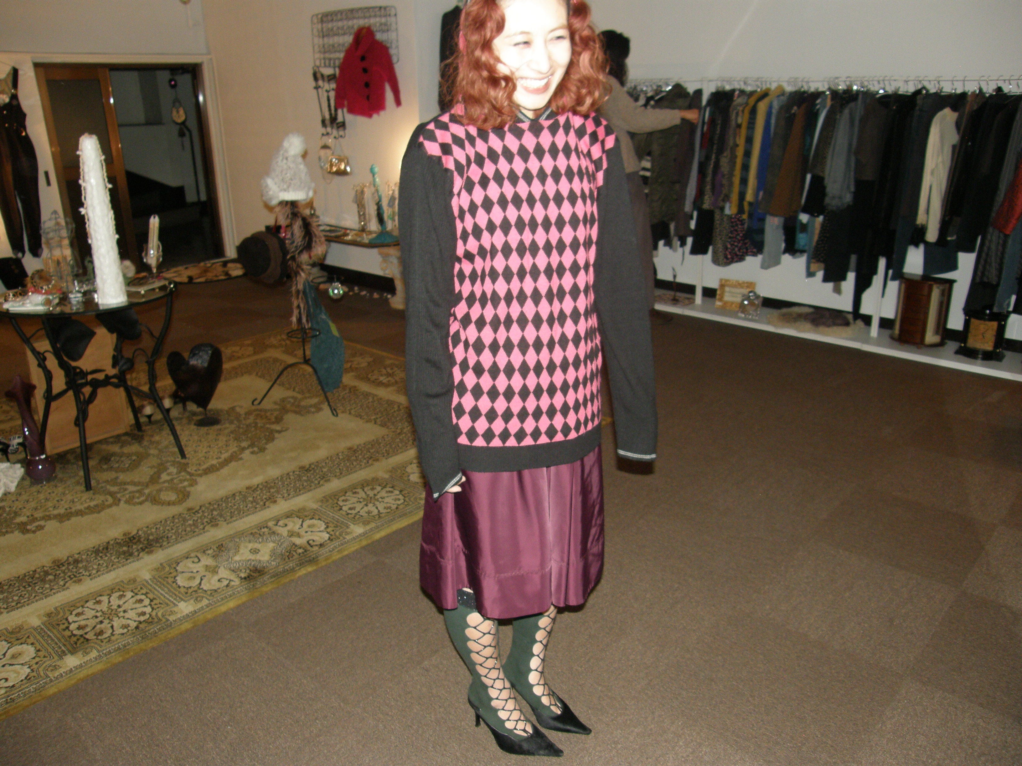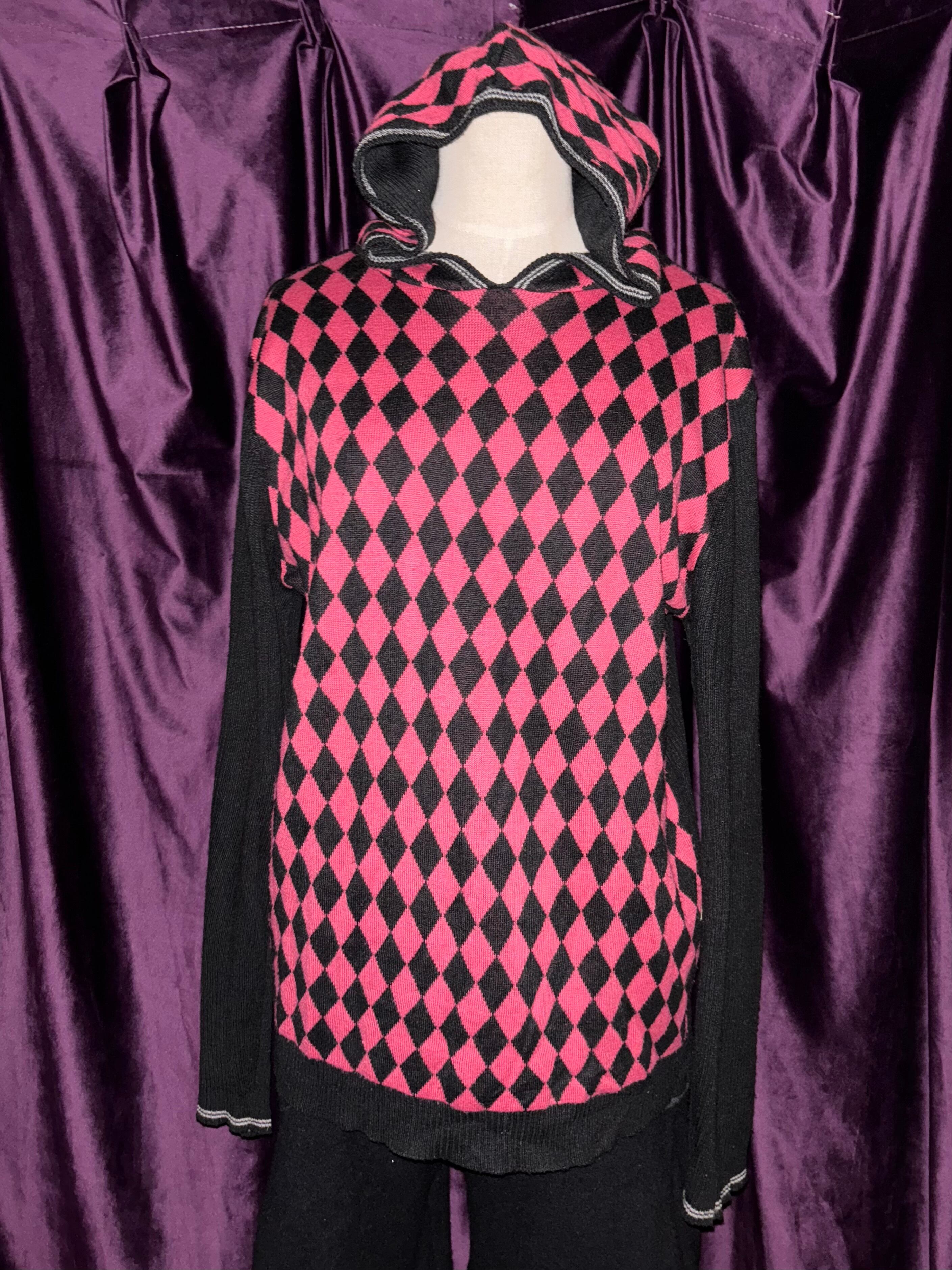 pink argyle pattern knit parker