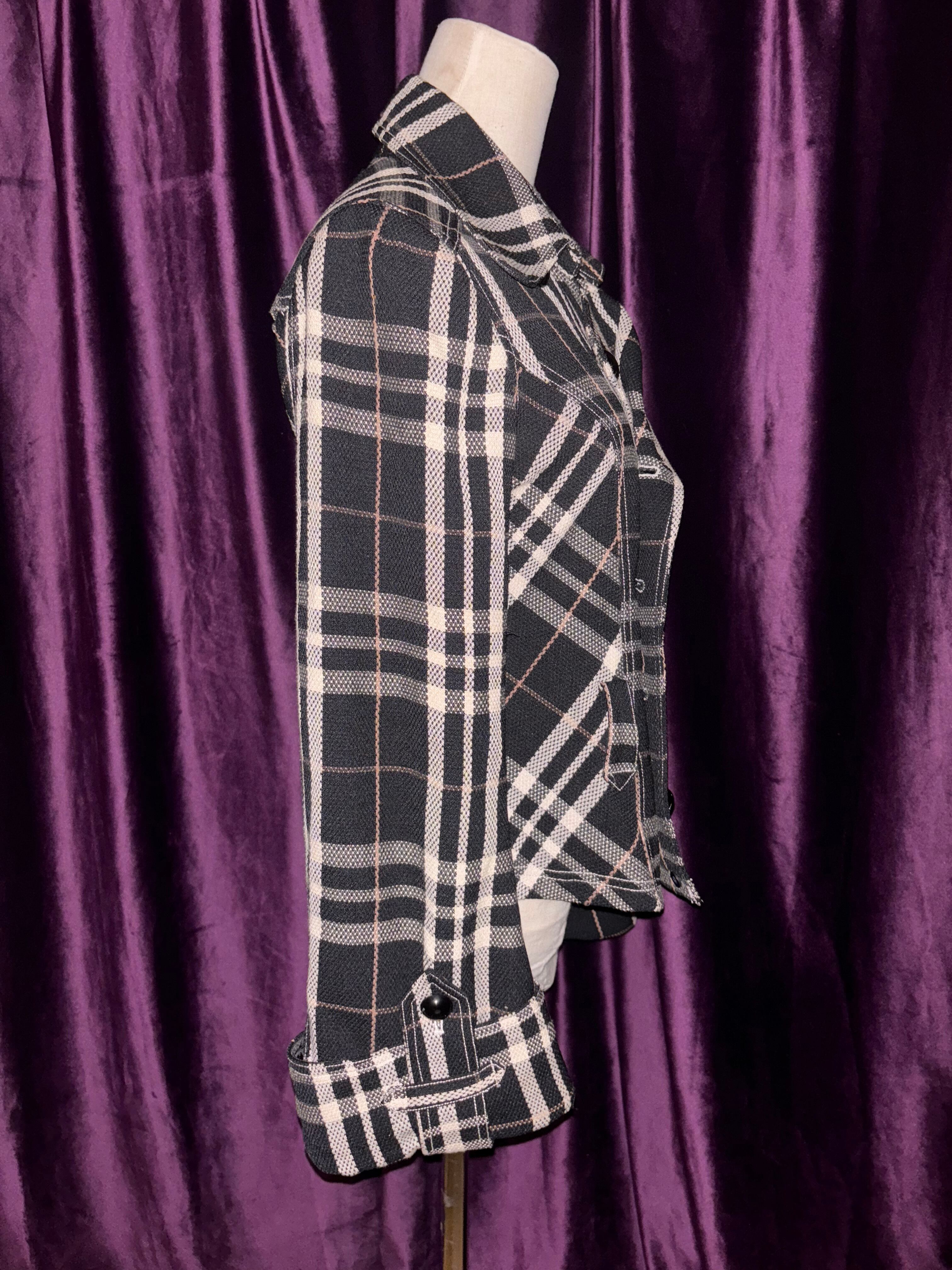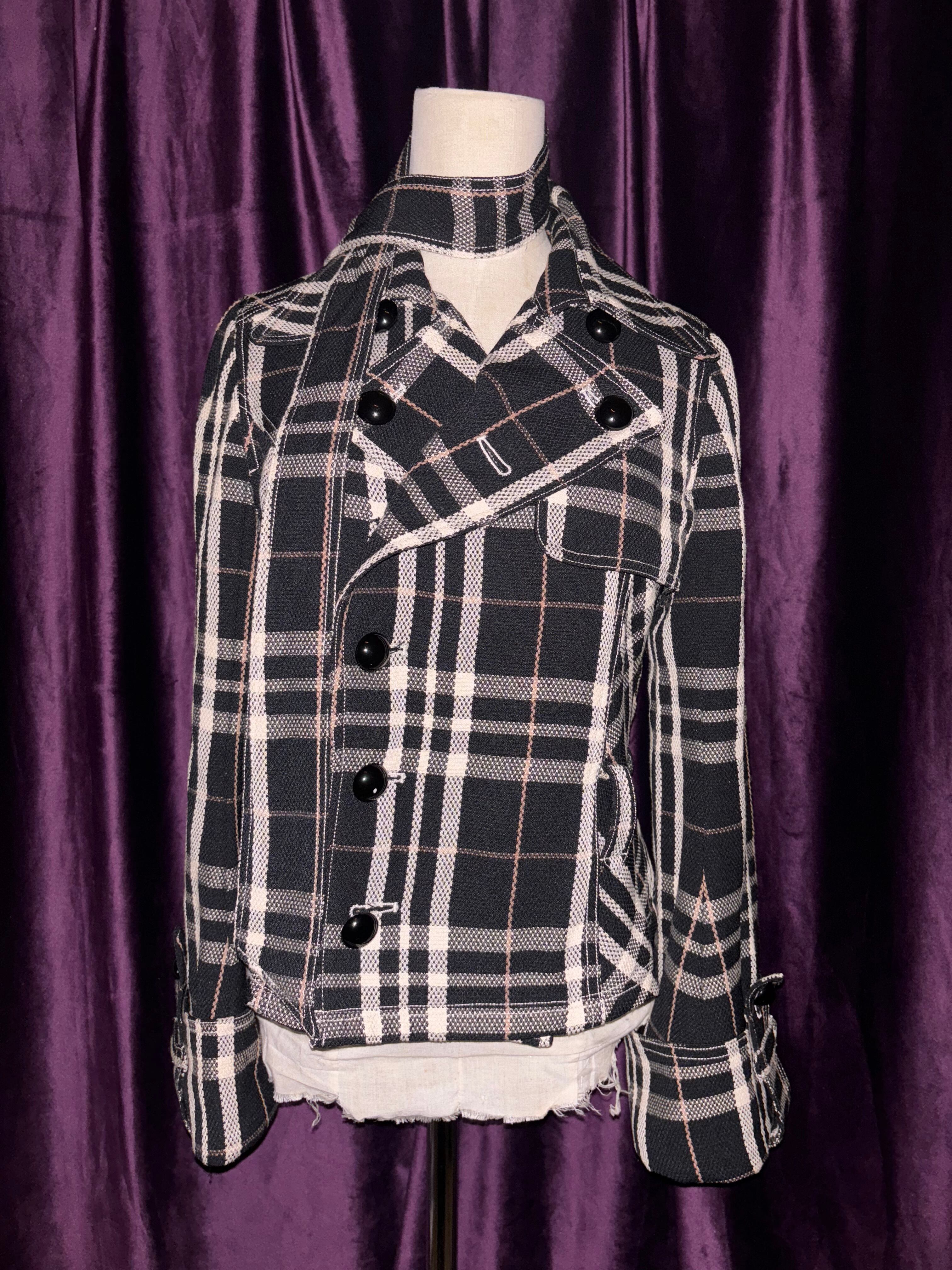2000年代の雰囲気が漂うタータンチェックのコート。丈短めでボトムスも選ばず合わせやすいです。